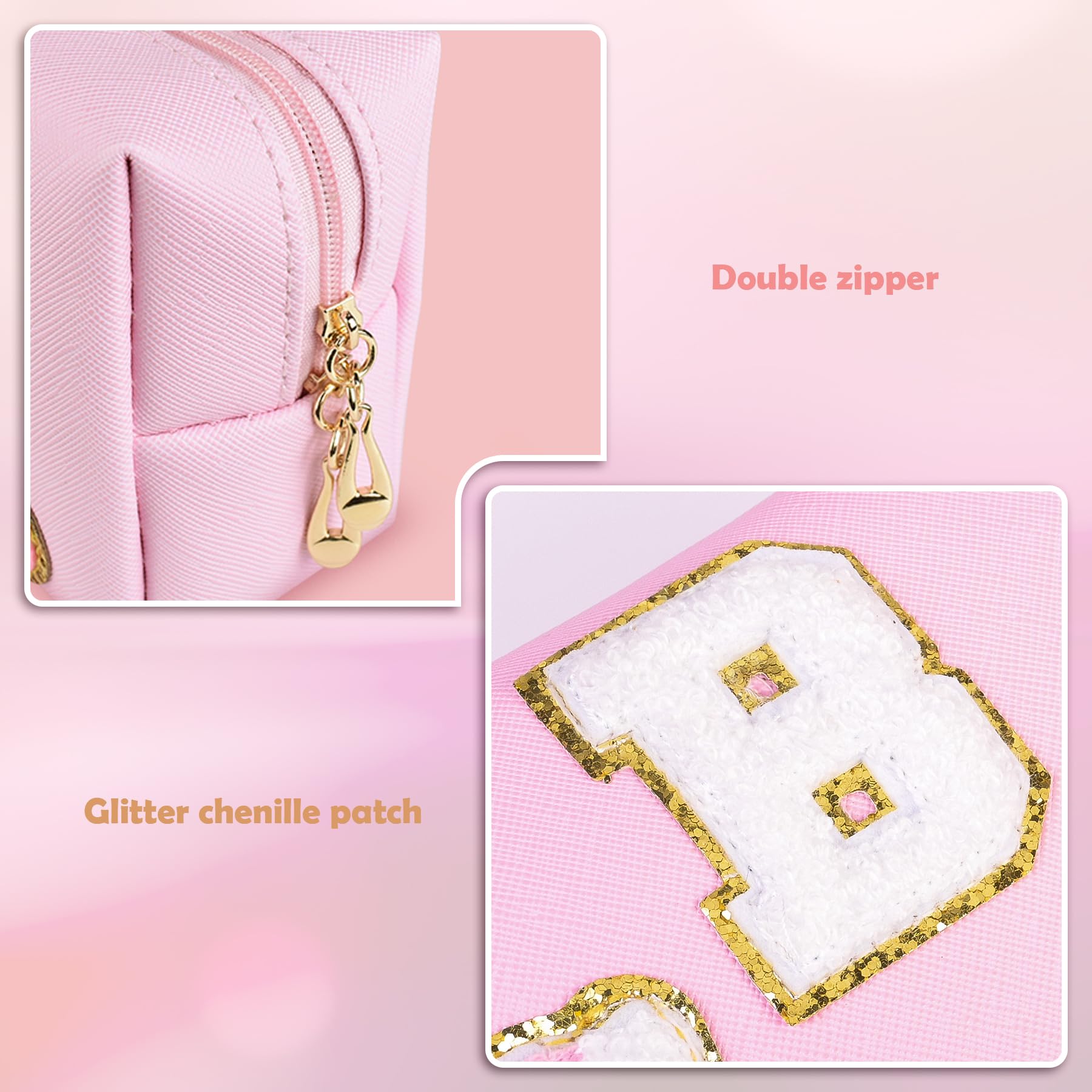 - 【Personalized Initial Patch Design】Elilier makeup bag boasts a gold glitter chenille patch that is not only stylish but also skin-friendly and comfortable to touch. The minimalist design adds a touch of fashion and cuteness to your daily routine, leaving you feeling vibrant and upbeat.