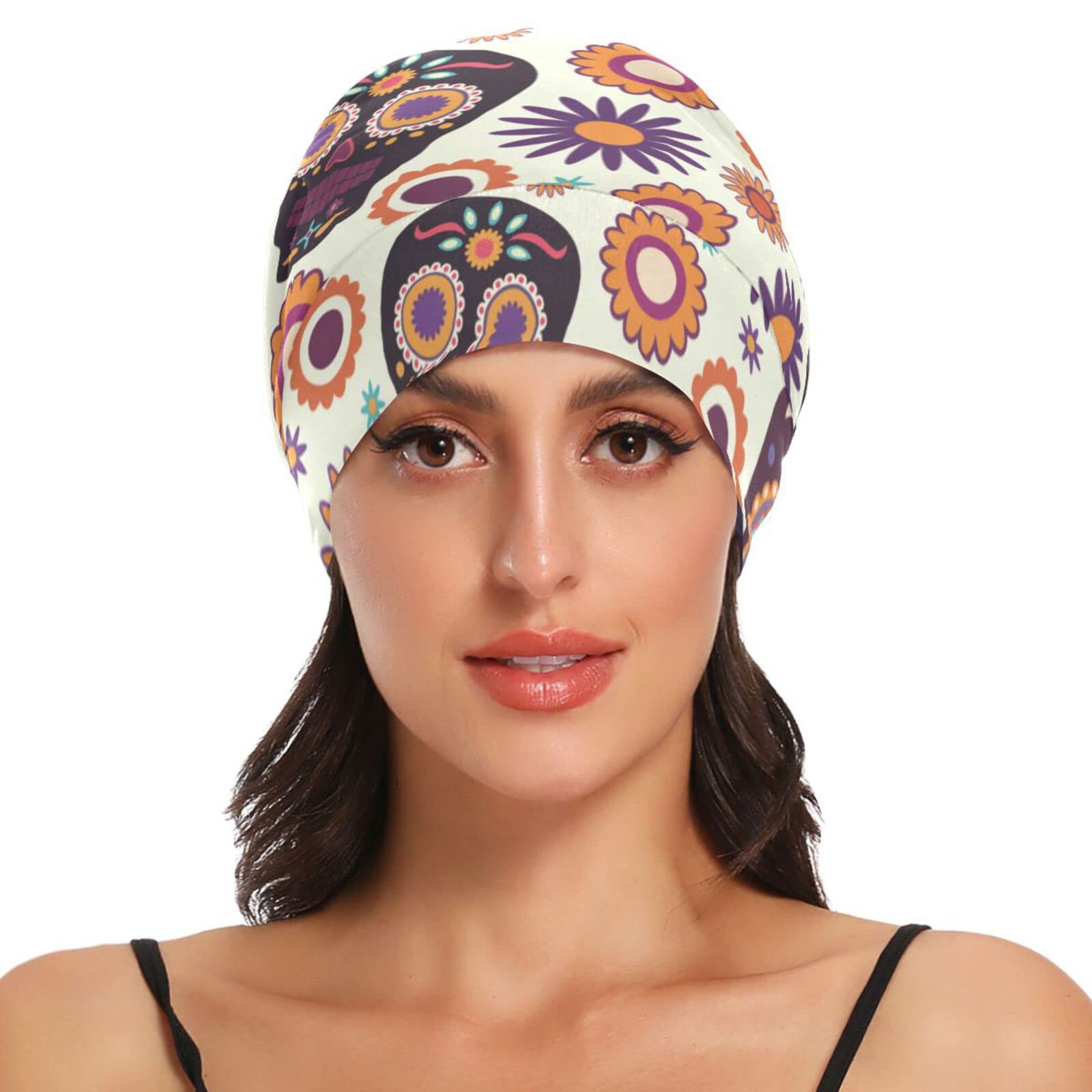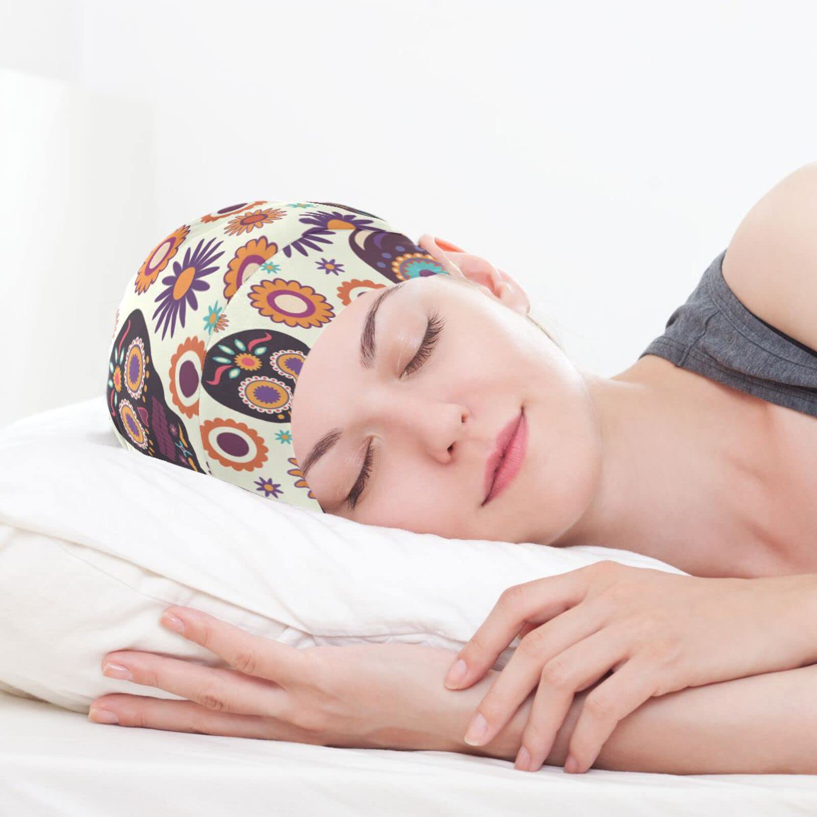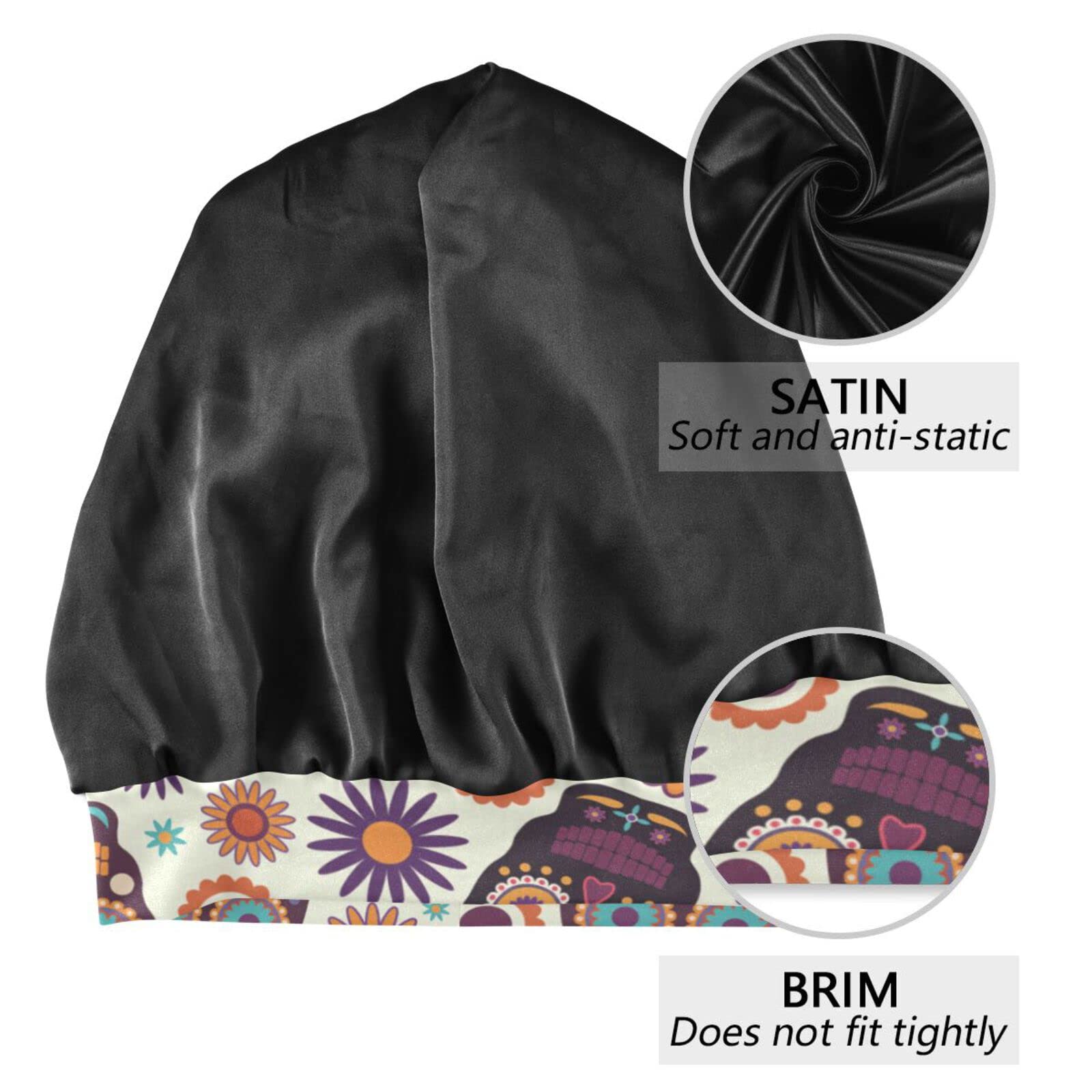 ElliTarr Satin Bonnet Lined Sleep Cap Hair Wrap Cover Slouchy Beanie for Curly Hair Protection for Gifts for Men Women Cute Skull Halloween