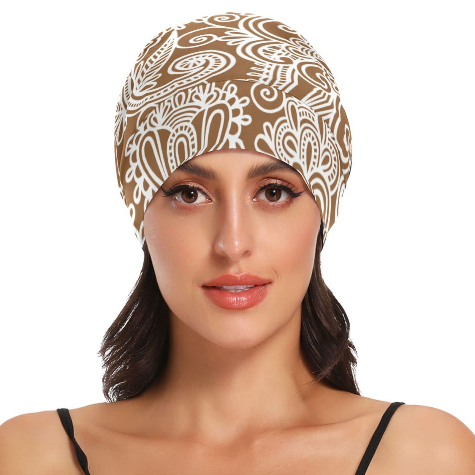 ElliTarr Satin Bonnet Lined Sleep Cap Hair Wrap Cover Slouchy Beanie for Curly Hair Protection for Gifts for Men Women Khaki Paisley