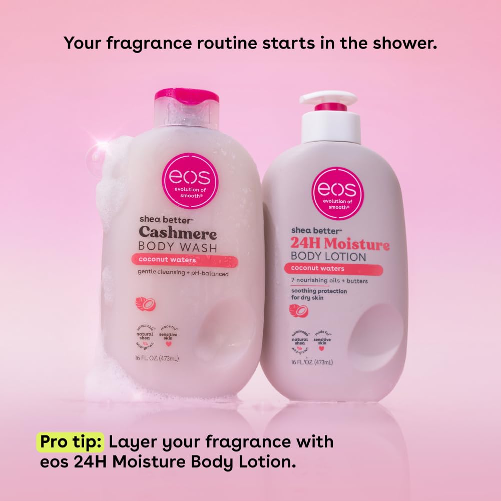 eos Shea Better Cashmere Body Wash, Coconut Waters, Moisturizing and Nourishing, pH Balanced Creamy Gel Formula, Paraben & Phthalate Free, Sensitive Skin,16 fl oz