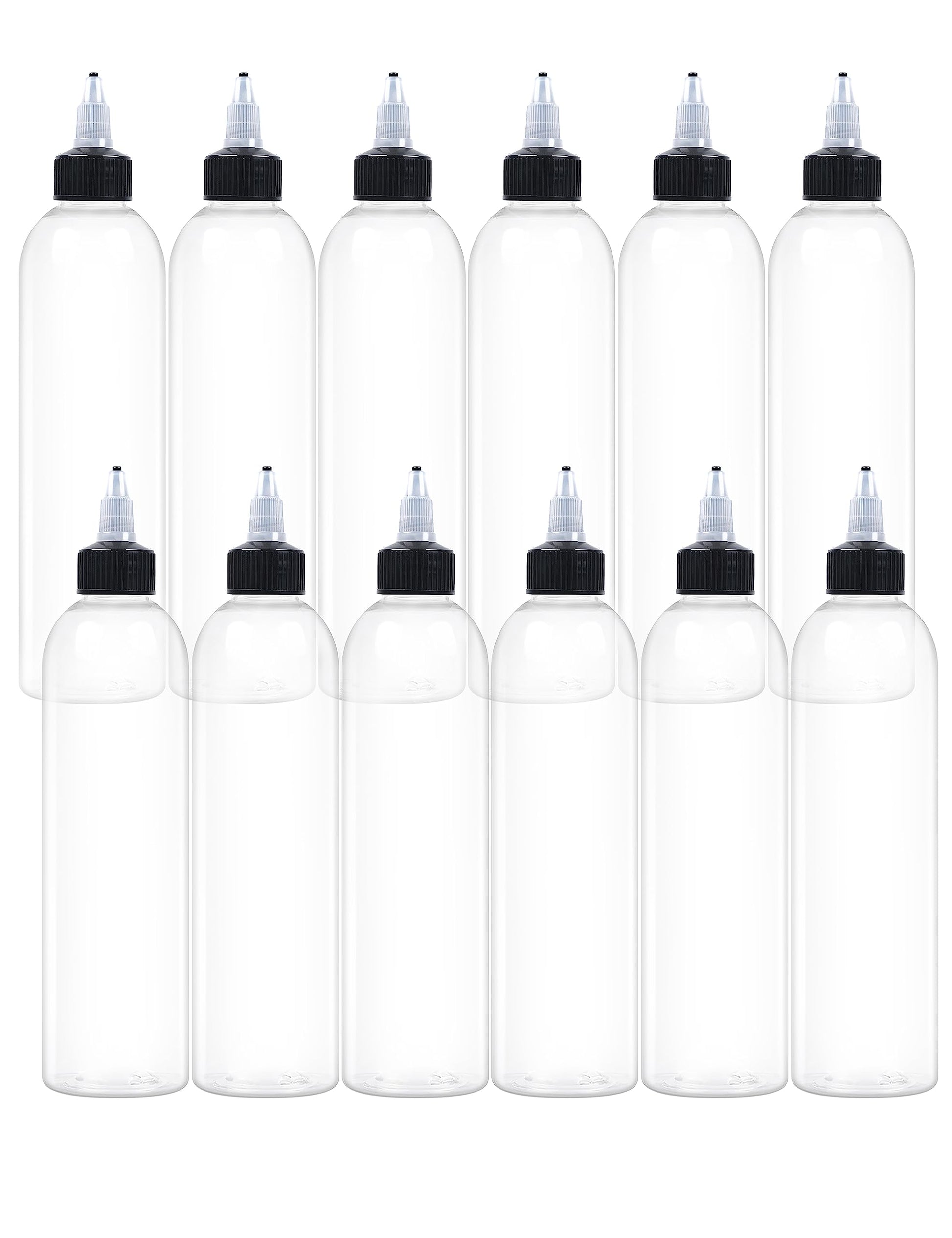 EOSAU 12 Pcs 8oz Plastic Squeeze Bottles with Twist Top Cap, 250ml Clear Dispensing Bottles, Empty Squirt Bottle for Liquids, Sauces, Arts, Crafts, Travel