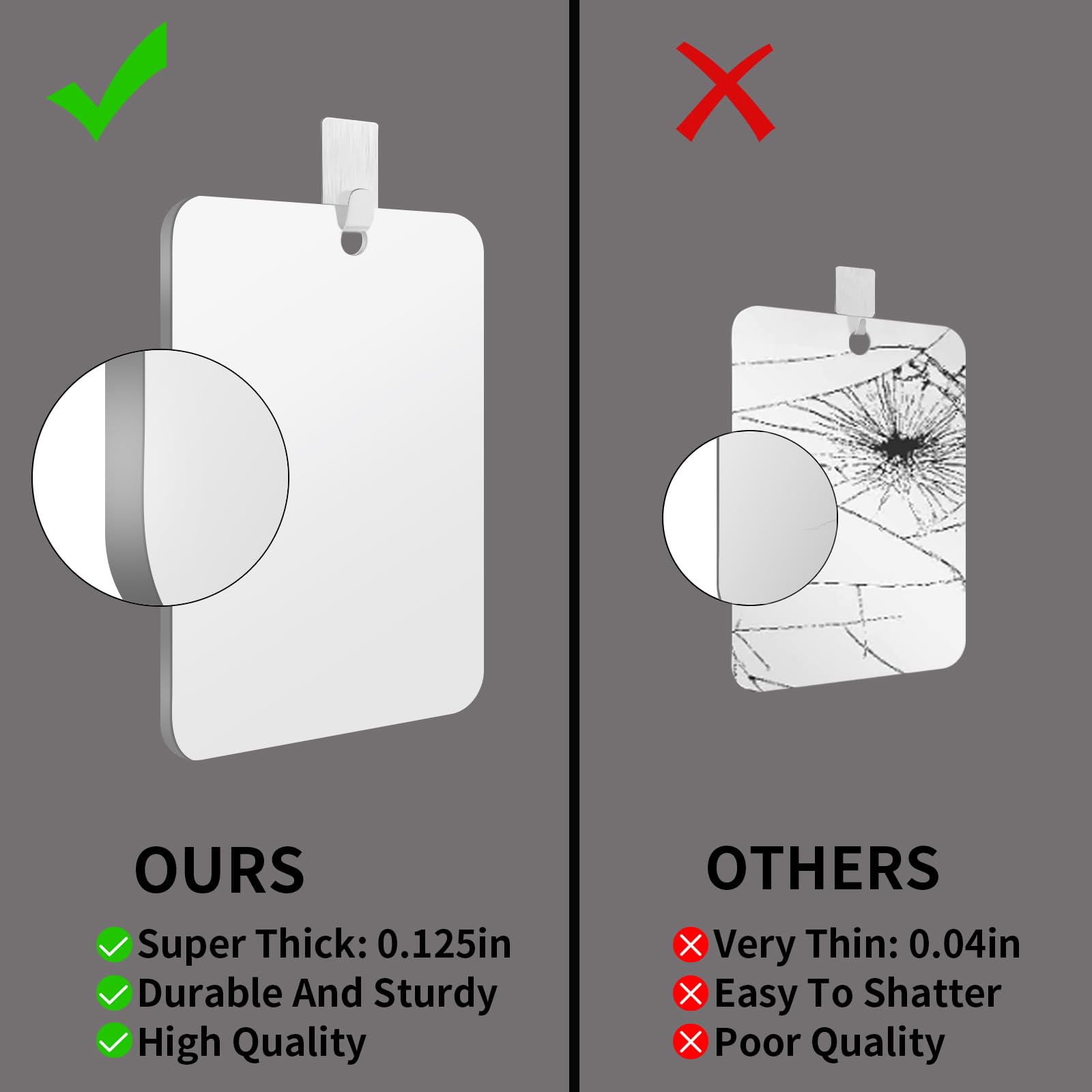 - 【UNBREAKABLE & SUPER THICK】: The fogless mirror for shower, it is explosion-proof and shatterproof. Because our thickness is 0.125in, the thickness of others is only 0.06in. Give you absolute safety, it won't break into pieces in case of accidental falling.