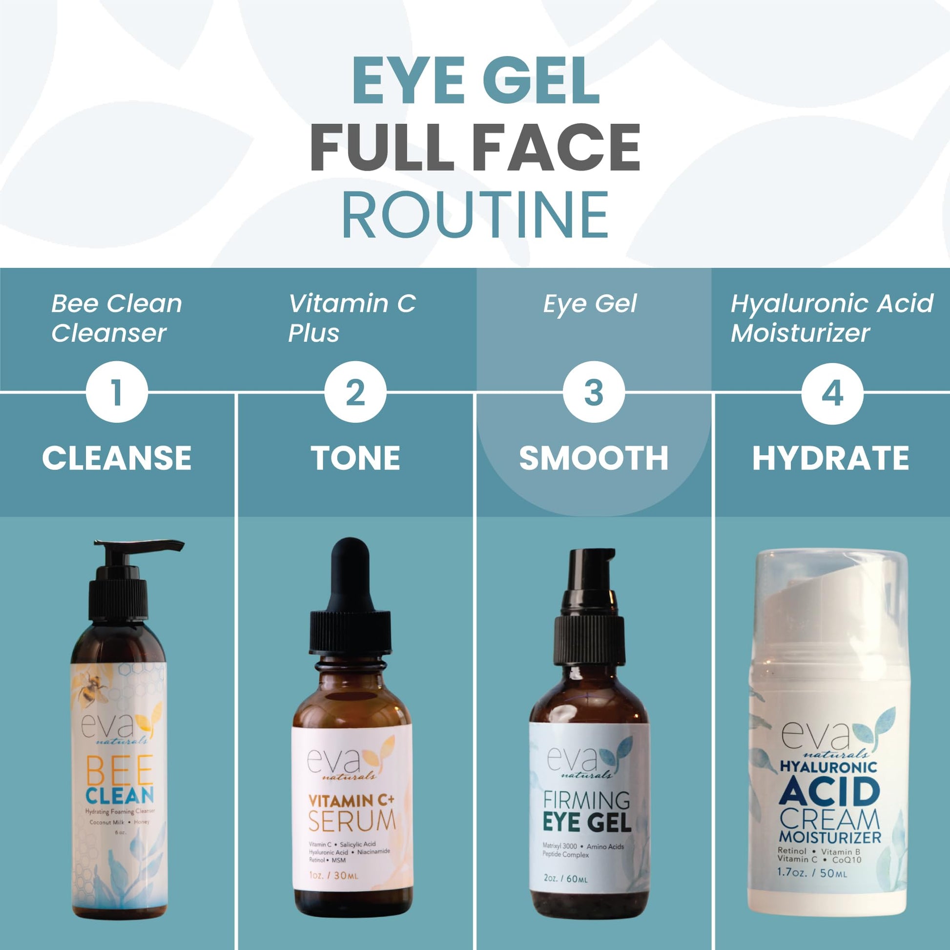 Eva Naturals Anti-Aging Eye Gel - Luxurious Hydrating Under Eye Cream For Dark Circles and Puffiness, Bags, Crows Feet, Wrinkles - With Hyaluronic Acid & Skin-Firming Peptides Eye Serum 2 oz (2 Pack)