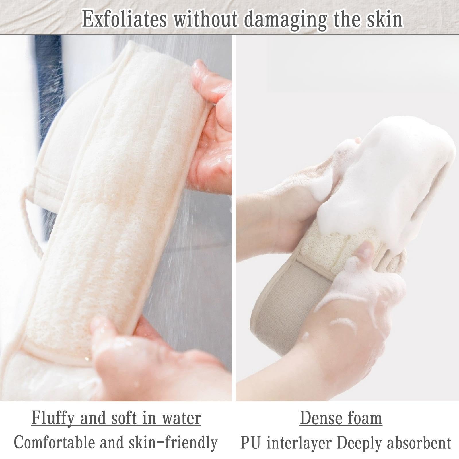 - [HEALTHY CLEANSING] Thisloofah Exfoliating Body Scrubber Is a Must-Have For Your Skincare Routine. Before Bathing, Please Luffa Sponge Immerse It In Warm Water To Soften It To Achieve The Effect Of Use. He Unique Texture Of The Shower Loofah Helps To Remove Dead Skin Cells, Unclog Pores, And Promote Healthy Blood Circulation, Resulting In Smoother And Healthier Skin.