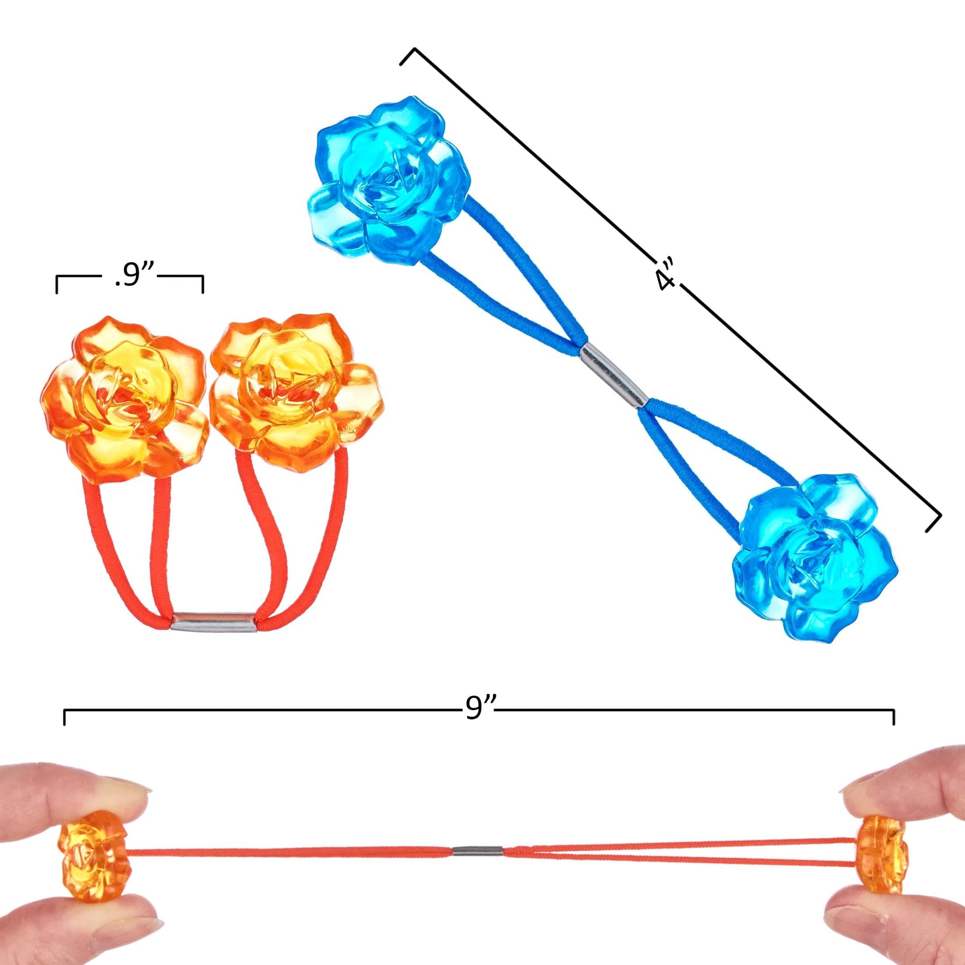 - 24-Piece Value Pack - This set includes 24 ponytail hair ties for girls These twin-bead pony tails hair ties feature a rose flower shape and come in assorted translucent colors including green, yellow, orange, pink, blue, and purple