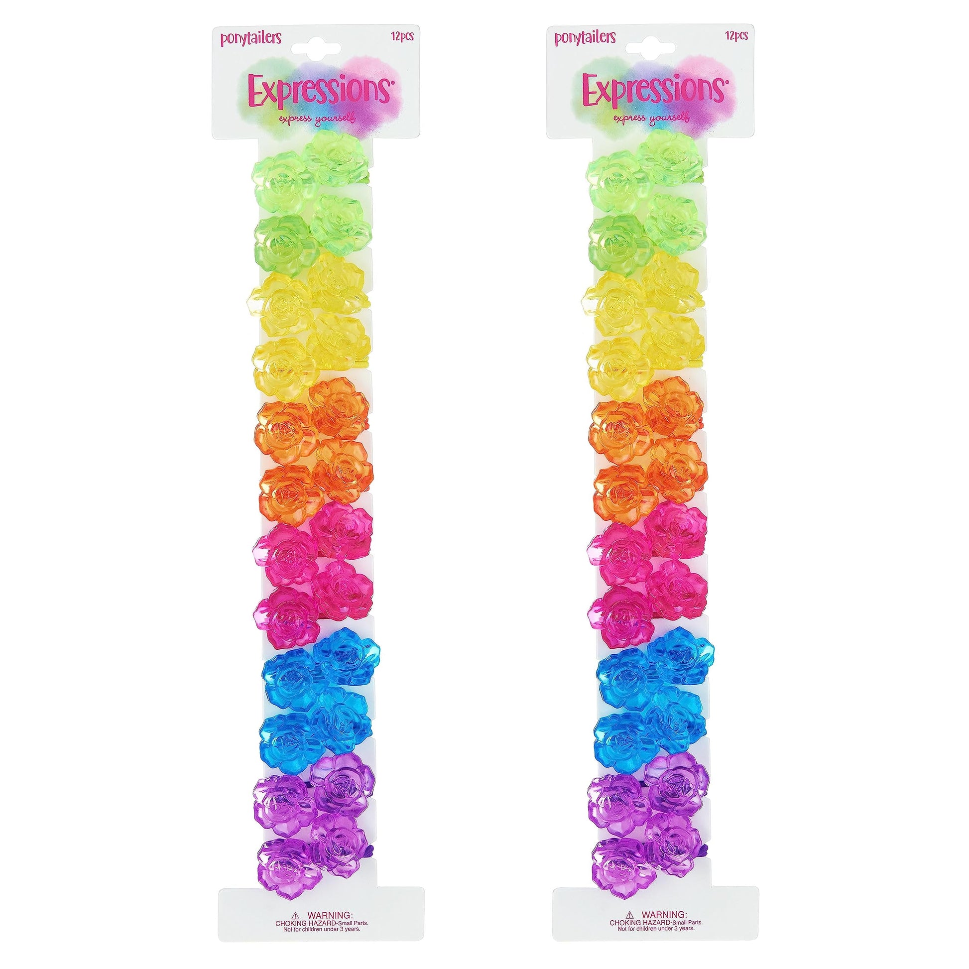 EXPRESSIONS Hairband 24-Piece Rose Twin Bead Ponytail Hair Elastics, Girls Value Pack