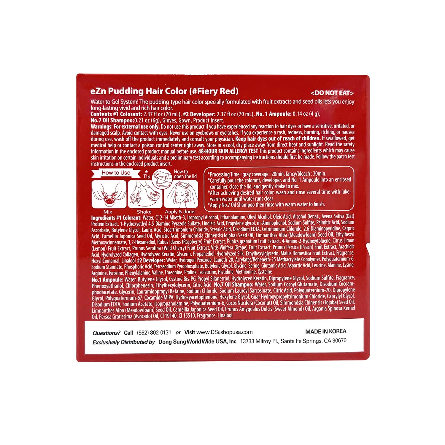 eZn Pudding Hair Dye, Ammonia-Free Semi-Permanent DIY Hair Color Kit with Keratin, Made in Korea, Odorless, Gentle for Sensitive Skin, No Skin Irritation (Fiery Red, 1 Pack)