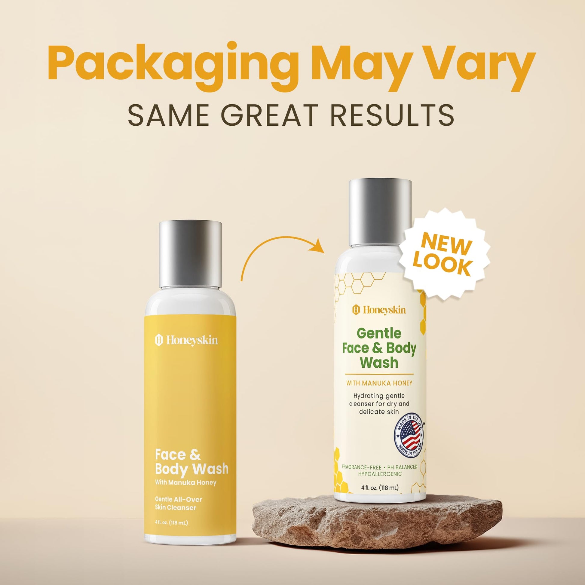 Face and Body Wash Moisturizer for Acne and Sensitive Skin Body Wash with Manuka Honey - Hydrating Facial Cleanser for Dry and Sensitive Skin and Anti-Aging Skincare for Men and Women (4oz)