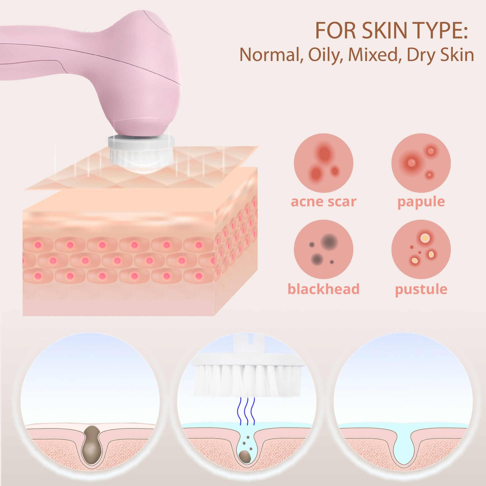 Face Scrubber | Facial Cleansing Brush Exfoliator Skin Care Products Beauty Products Powered Electric Wash Exfoliating Spin Cleanser Cleaning Scrub Including 7 Heads (Rose Quartz)