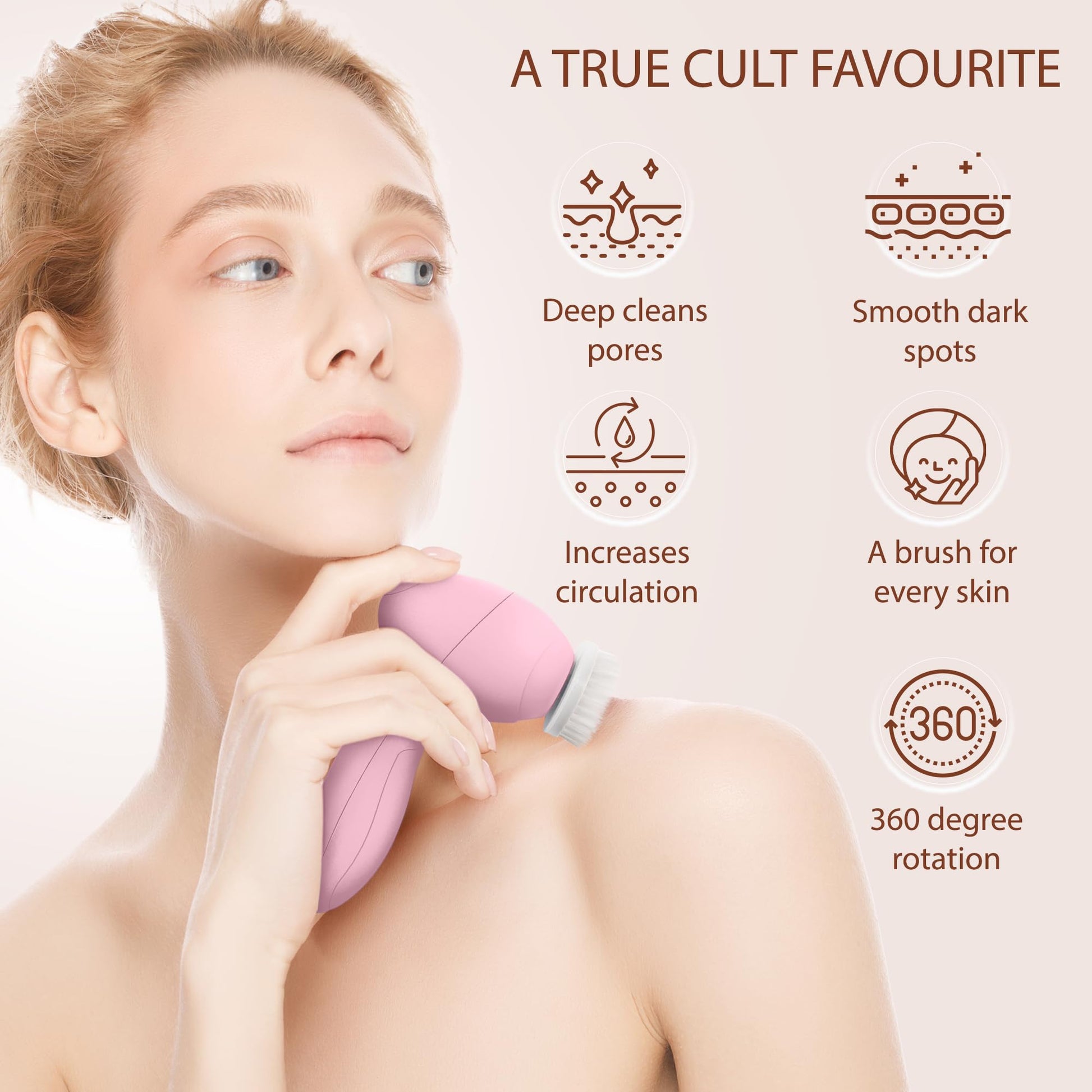 - ALL IN ONE FACE CLEANSING BRUSH SET - This 360-degree rotation exfoliating face cleanser brush greatly boosts the performance of your skincare regime. Note that the face exfoliator tool is powered by 2AA batteries (batteries not included).