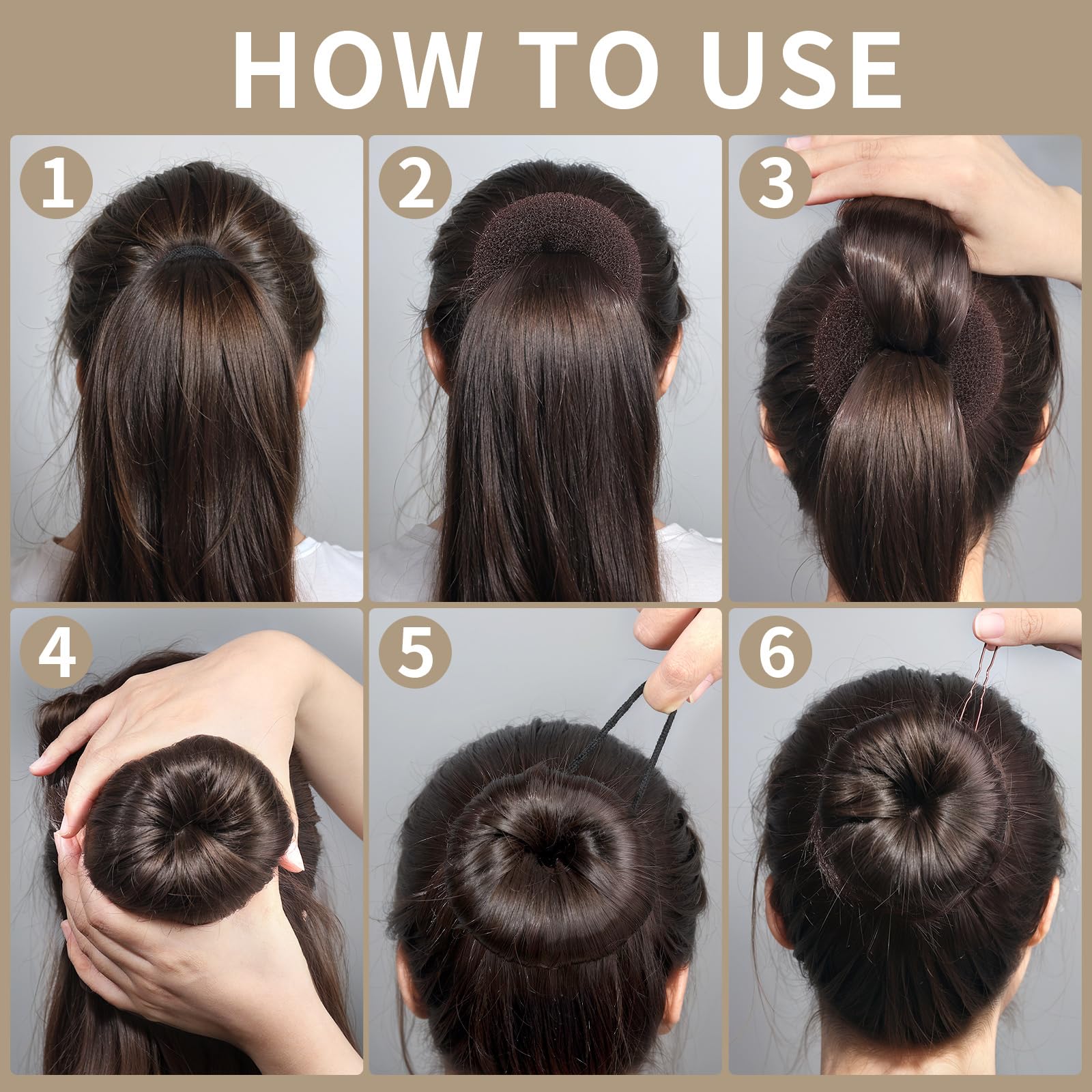 - 8PCS Hair Donut Bun Set for Kids: The hair buns kit includes total 8pcs donut bun makers (4 small and 4 extra small) dark brown to help your make hair buns orderly, quickly and easily. 5pcs elastic hair ties and 40pcs hair bobby pins brown. One set includes all essential tools to make donut hair buns.