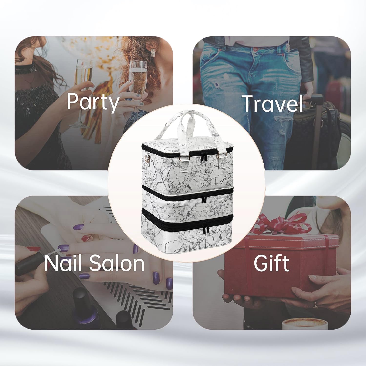 - 4.Easy to Carry: The two handles make to convenient to carry evenly when you're traveling. Whether you are a manicure lover or a home nails polish storage, business trip. Give to your significant other on the holidays