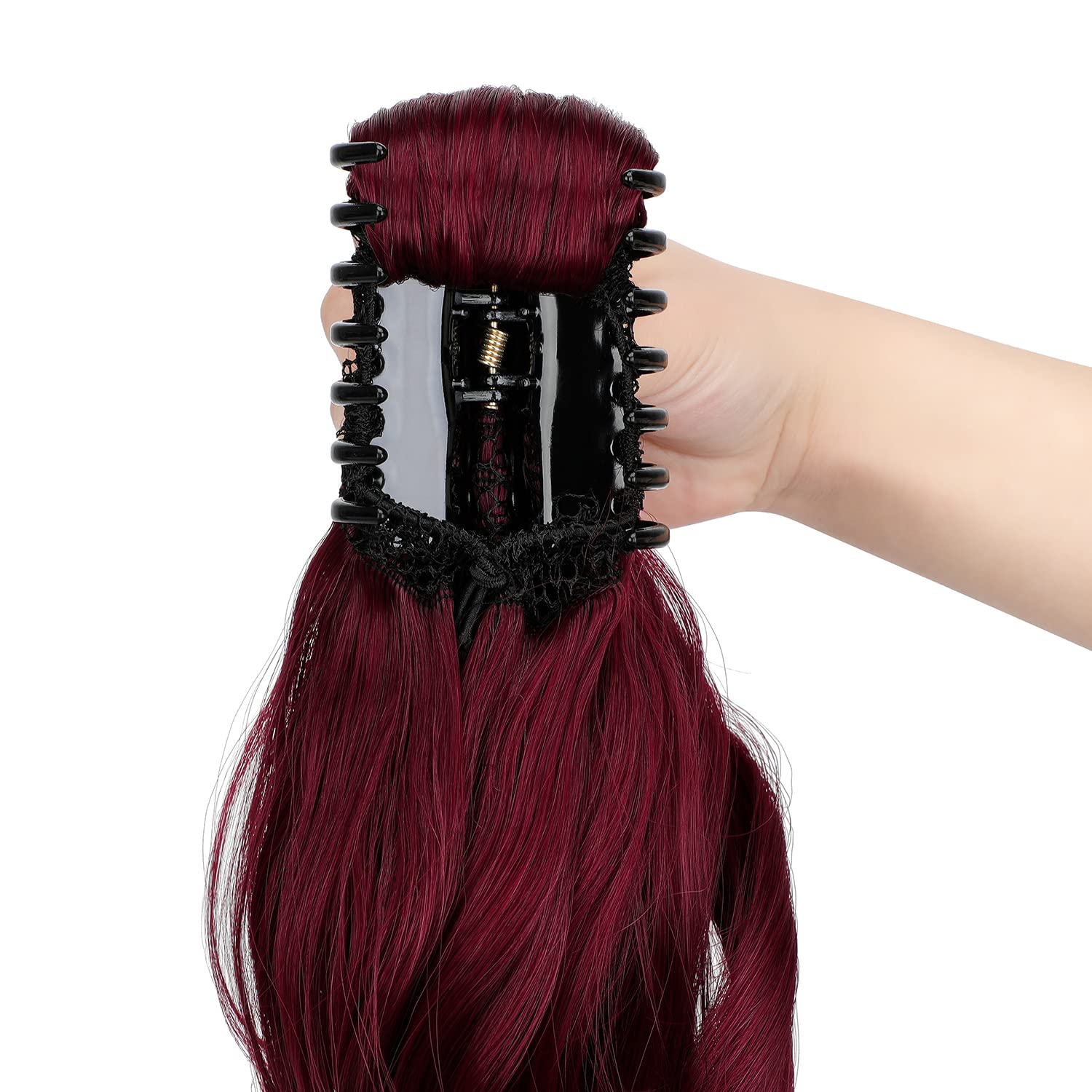 FELENDY Ponytail Extension Claw 18" 20" Curly Wavy Straight Clip in Hairpiece One Piece A Jaw Long Pony Tails for Women Wine Red