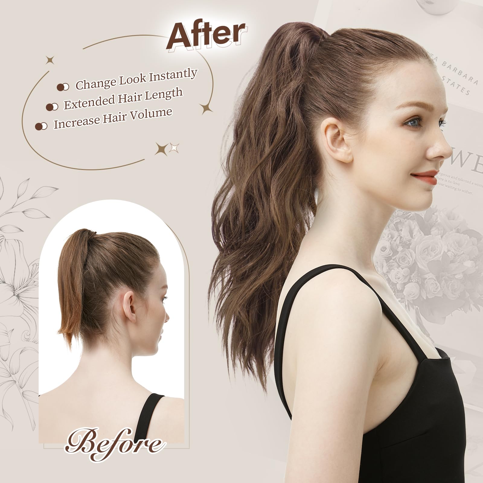 - Easy to Use: The only thing you need to do before wearing is to tie your own hair into a bun or small ponytail. Then open the claw clip and attach the ponytail extension to your hair, an attractive wavy ponytail hairstyle is immediately visible. It's perfect for changing your hair look in seconds. Easily create a more free and casual hairstyle