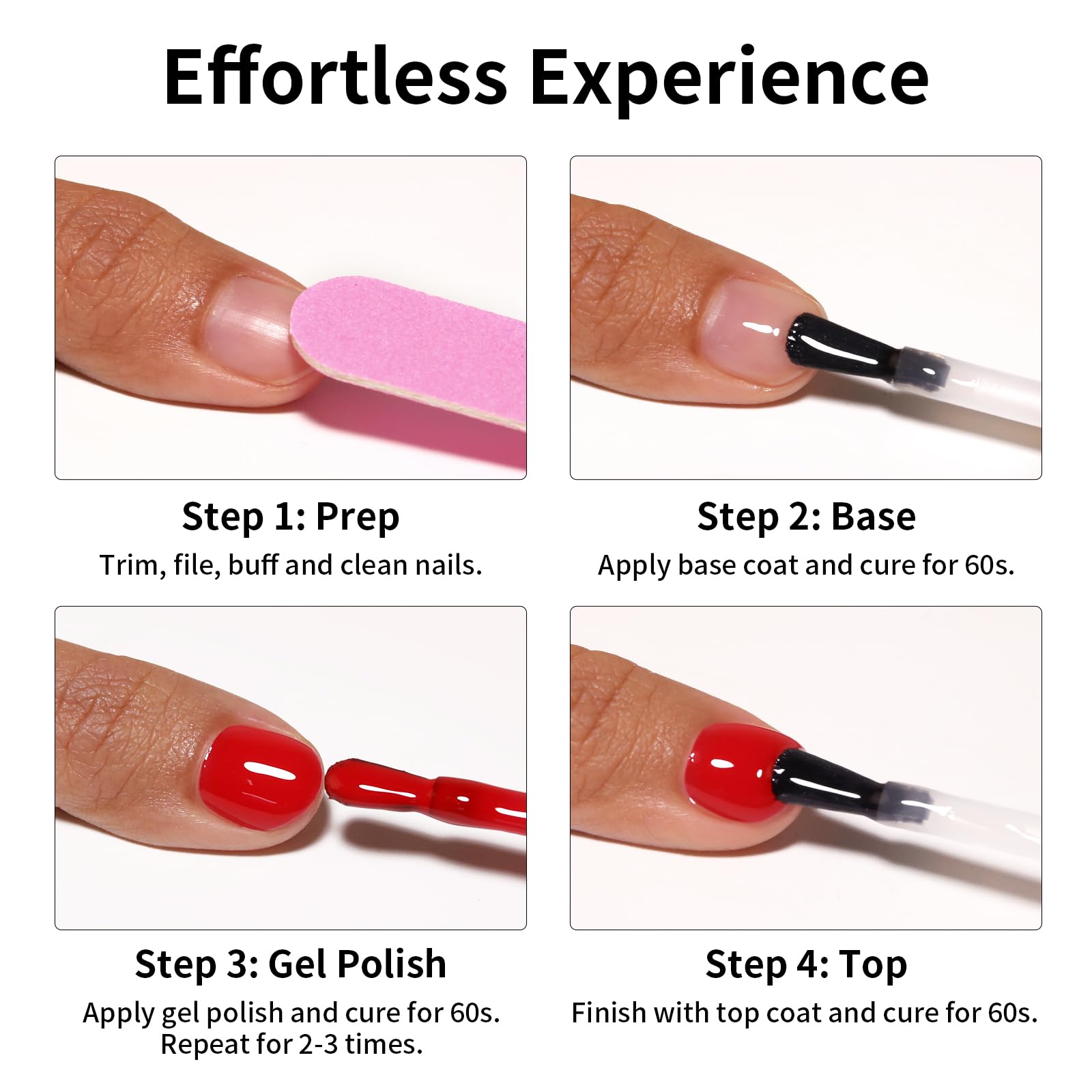 - Environmental & Healthy - Our gel polishes are low odor, rich color, middle consistency, no harsh ingredients or adhesives that lead to damaged nails.Which makes it safer for your nail beds, protect against chips, breaks, and yellowing of nails.