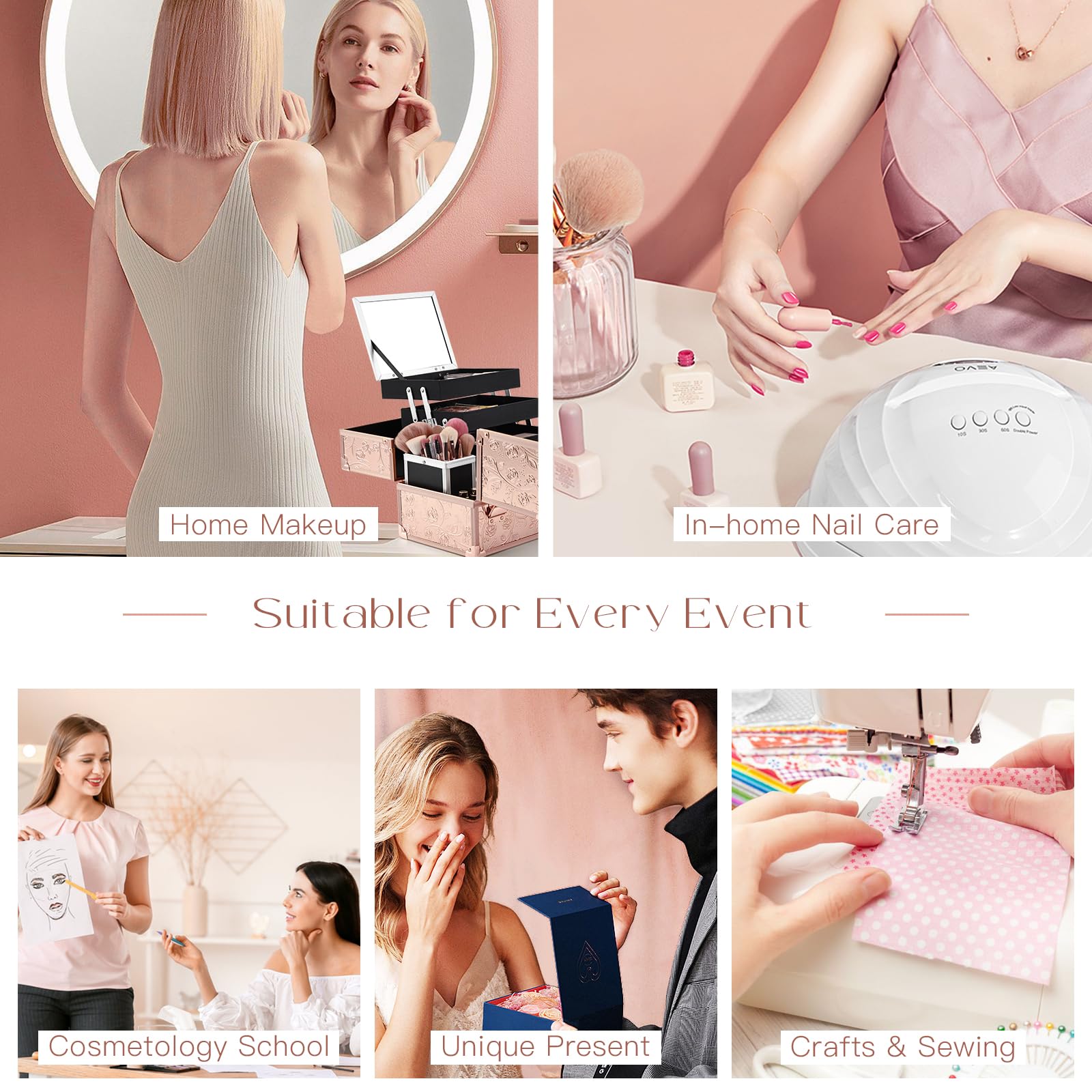 - Upgraded 3 Trays: The improved 3-tier trays hold longer eyeshadow palettes and tools, offering extra storage for neater cosmetics. Ideal for personal or professional use, it enhances convenience and efficiency. The extended design adds space and elegance, elevating the makeup experience. Perfect for organizing cosmetics, it's a top pick for any makeup table.