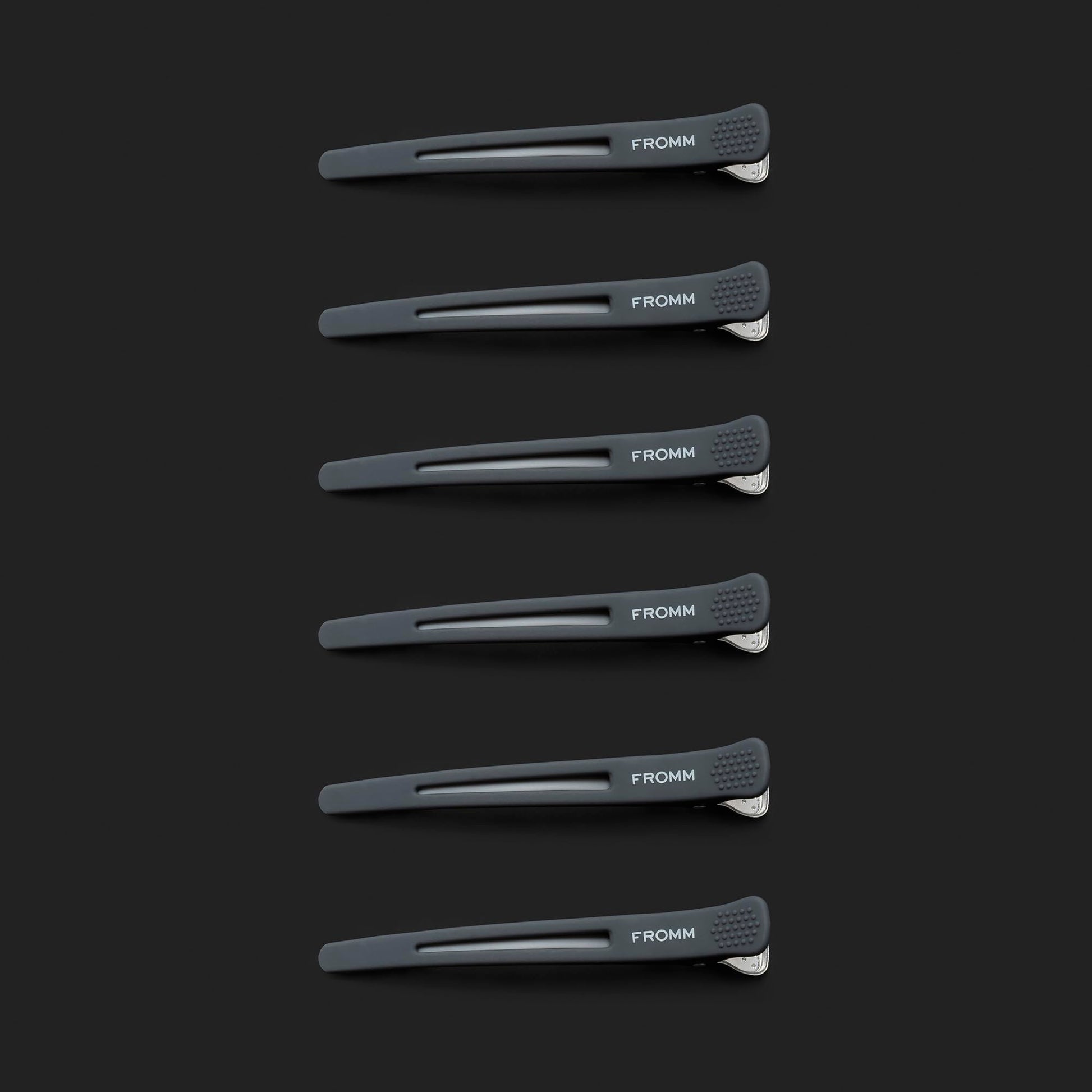 Details: Our rubberized grip clips offer a snug fit on all hair types and textures making them a stylist must have for styling, blow-drying, coloring, and cutting. Their unique rubberized strip can hold both small and large sections of hair in place, regardless of hair type or length. The rubberized strip leaves little to no bend or fold in the hair making them perfect for styling. Inserting and removing the clips is easy because they don’t have teeth which minimize any damage to the hair.
