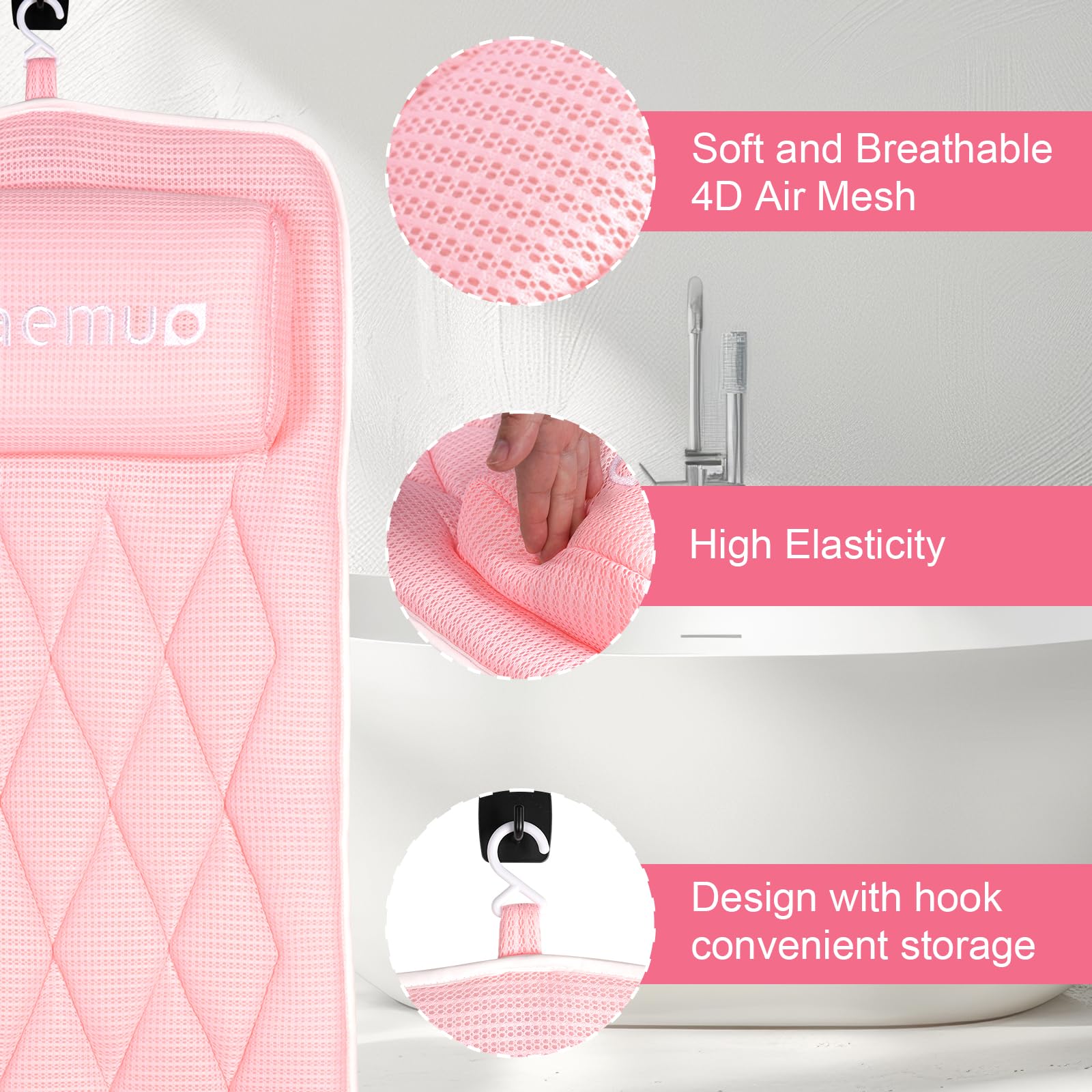 Full Body Bath Pillow Bathtub Pillows-Removable Lumbar Cushion with 17 Non-Slip Suction Cups 4D Air Mesh Fit Any Tub Luxury Bathroom Accessories-Pink