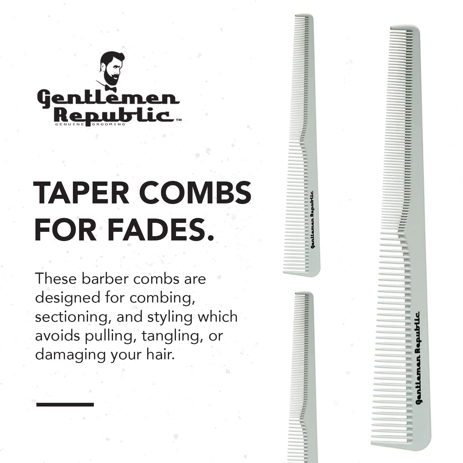 Gentlemen Republic Taper Comb for Fades, Blending and Men Hair Cuts – Soft Round Tips, Soft Touch, Strong Teeth with Strong Body – Made for Barbers, at-home Grooming and Styling