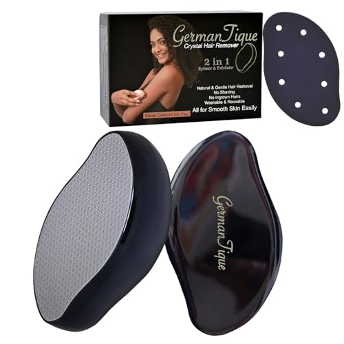- AWAY FROM IRRITATION AND SLOW HAIR REGROWTH:Germantique crystal hair removal tool is a new generation of hair removal epilator. It can remove the hair without black dots easily and exfoliate dry skin cells with gentle glide which leaves skin soft and silky smooth .The hair can be evenly grabbed and neatly removed from the hair root when rubbing along the innovative circular patterns.No irritation,no fuss. It helps slow down and thinner hair regrowth after a regular use every two weeks
