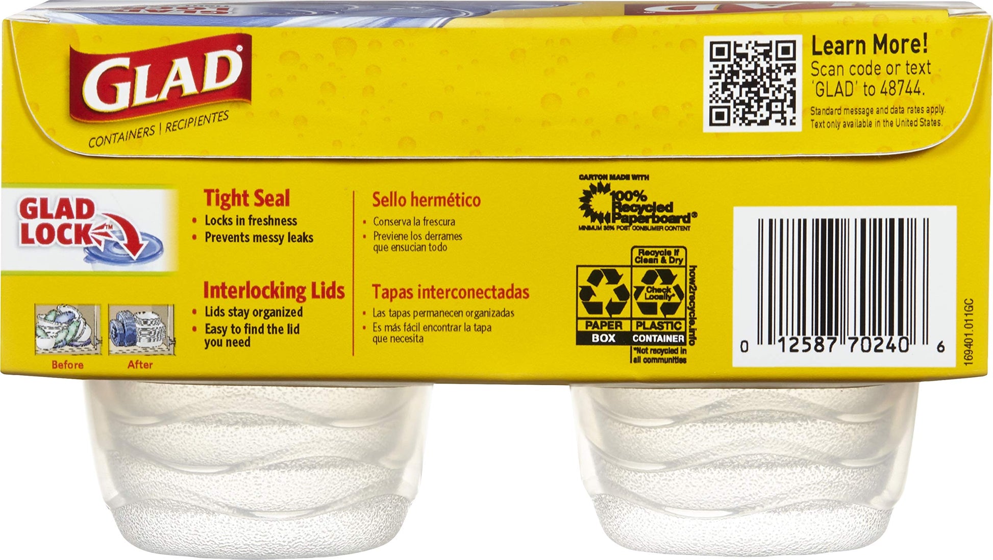 - TIGHT SEALING FOOD STORAGE CONTAINERS - GladWare is your kitchen ally. Tight sealing food storage containers extend the lifetime of your leftovers and reduce mess. Perfect for the meal prep maven, lunch box packing expert, or freezer-filling guru