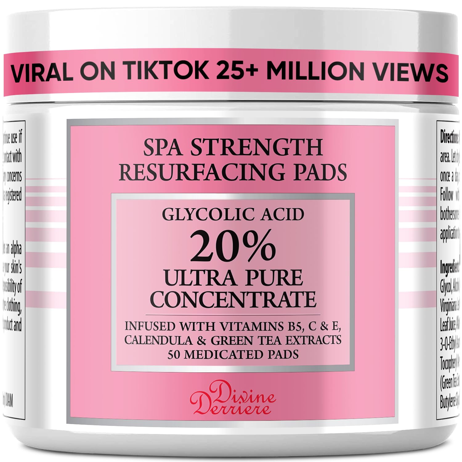 Glycolic Acid Pads with Vitamin C - Toner Pads for Face Cleansing With Tea Tree Oil - Exfoliating Pads with 20% AHA & Vitamins E, B3, B5 - Facial Peel Resurfacing Pads, Glycolic Acid Peel (50)