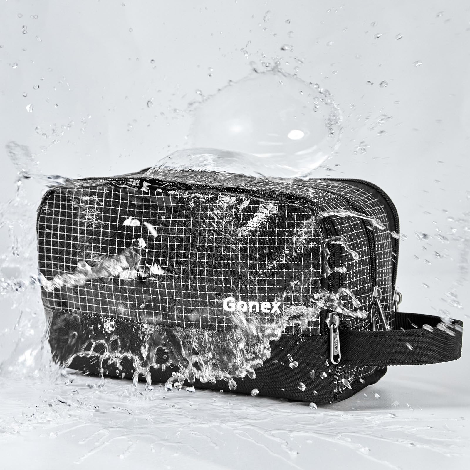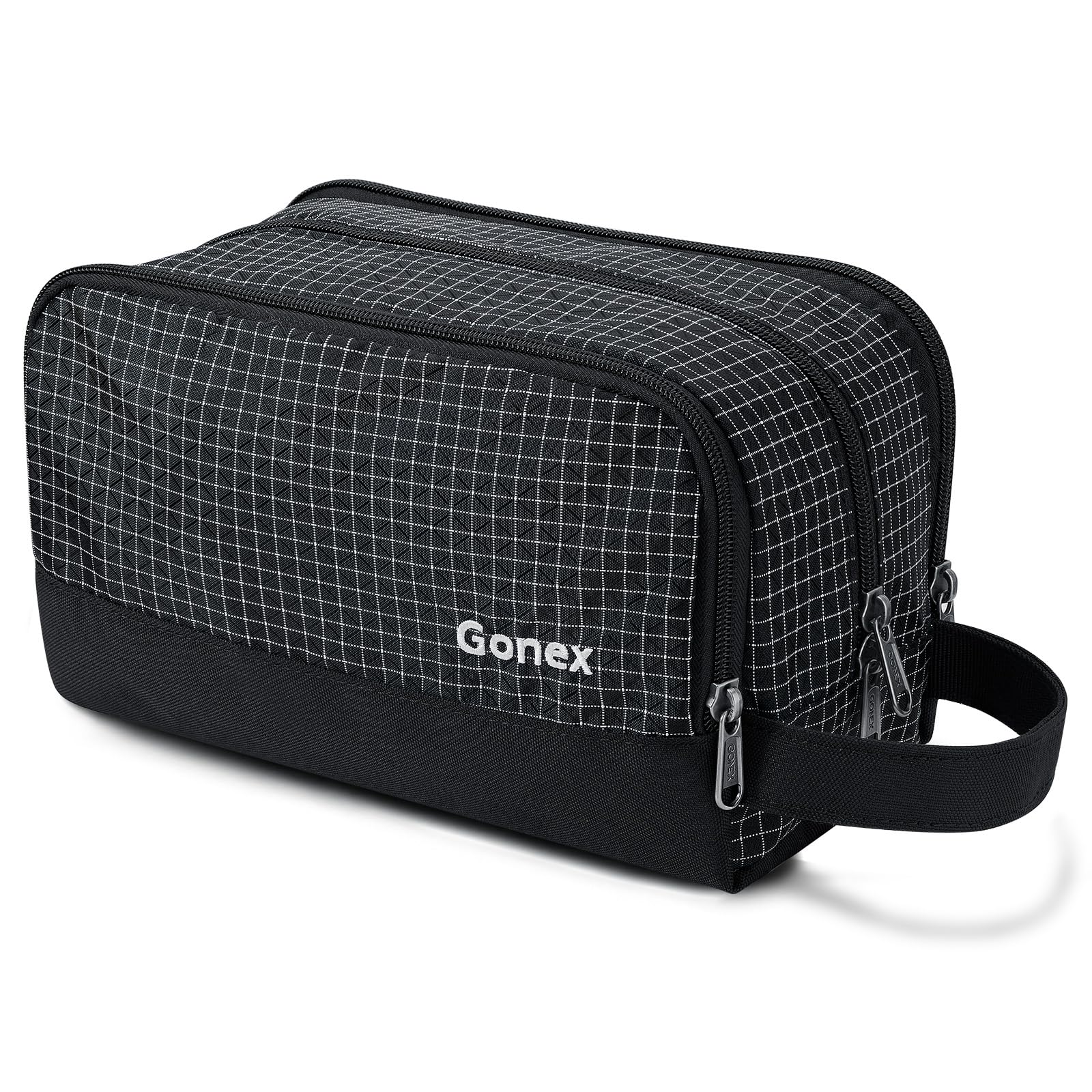 Gonex Travel Toiletry Bag Nylon, Dopp Kit Shaving Bag Toiletry Organizer Checkered Pattern (Black)