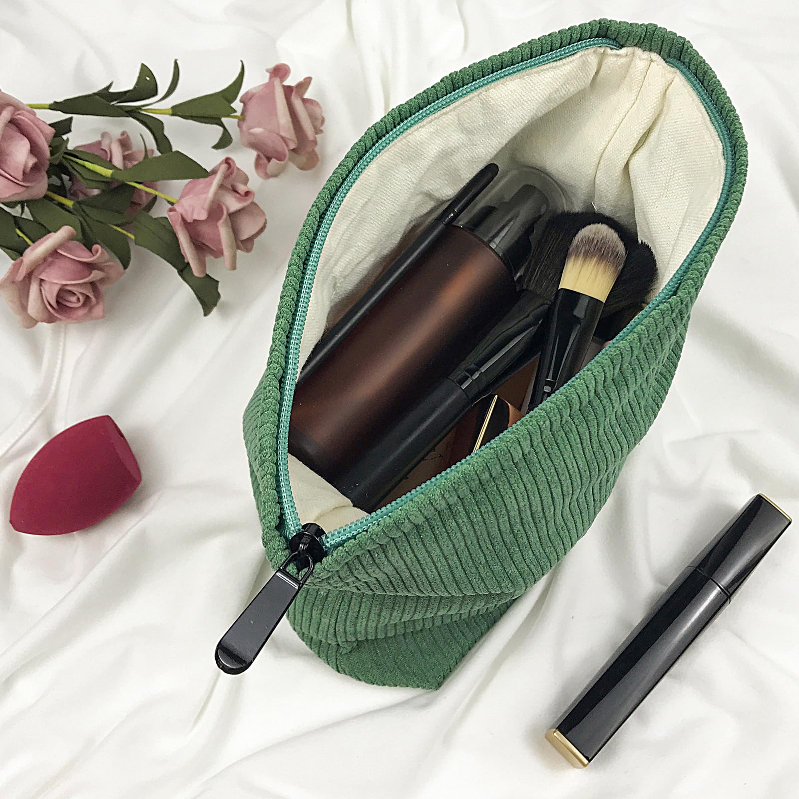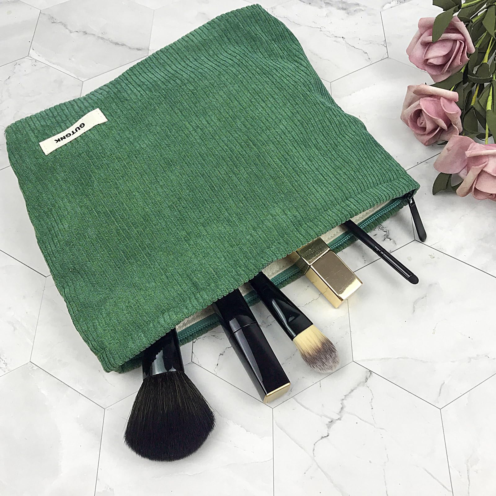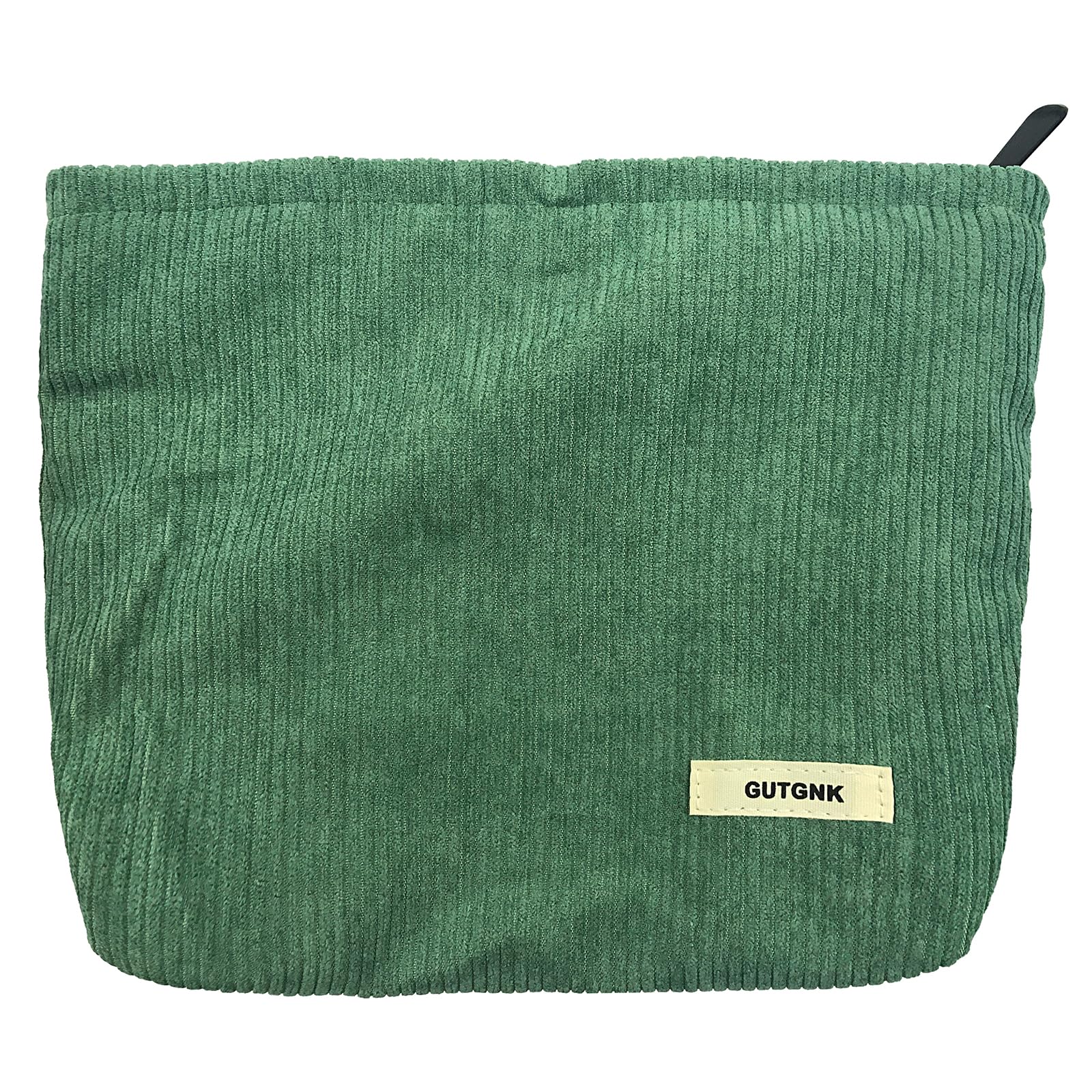 GUTGNK Corduroy Ladies Cosmetic Bag, Large Capacity Canvas Cosmetic Bag Travel Toiletry Bag Accessories Organizer, Grass Green