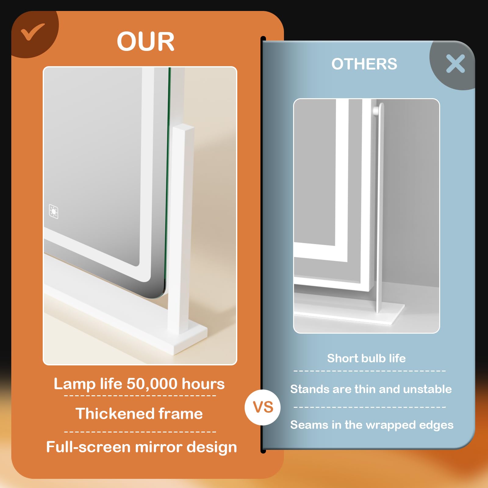 - 👍【Upgrade brightness】Most of the makeup mirrors with light bars on the market only have 120 light beads, which makes consumers feel that the lighting is not enough. We have improved on this! We have a full 180 light beads light bar per meter,which greatly improving the brightness of the makeup mirror.