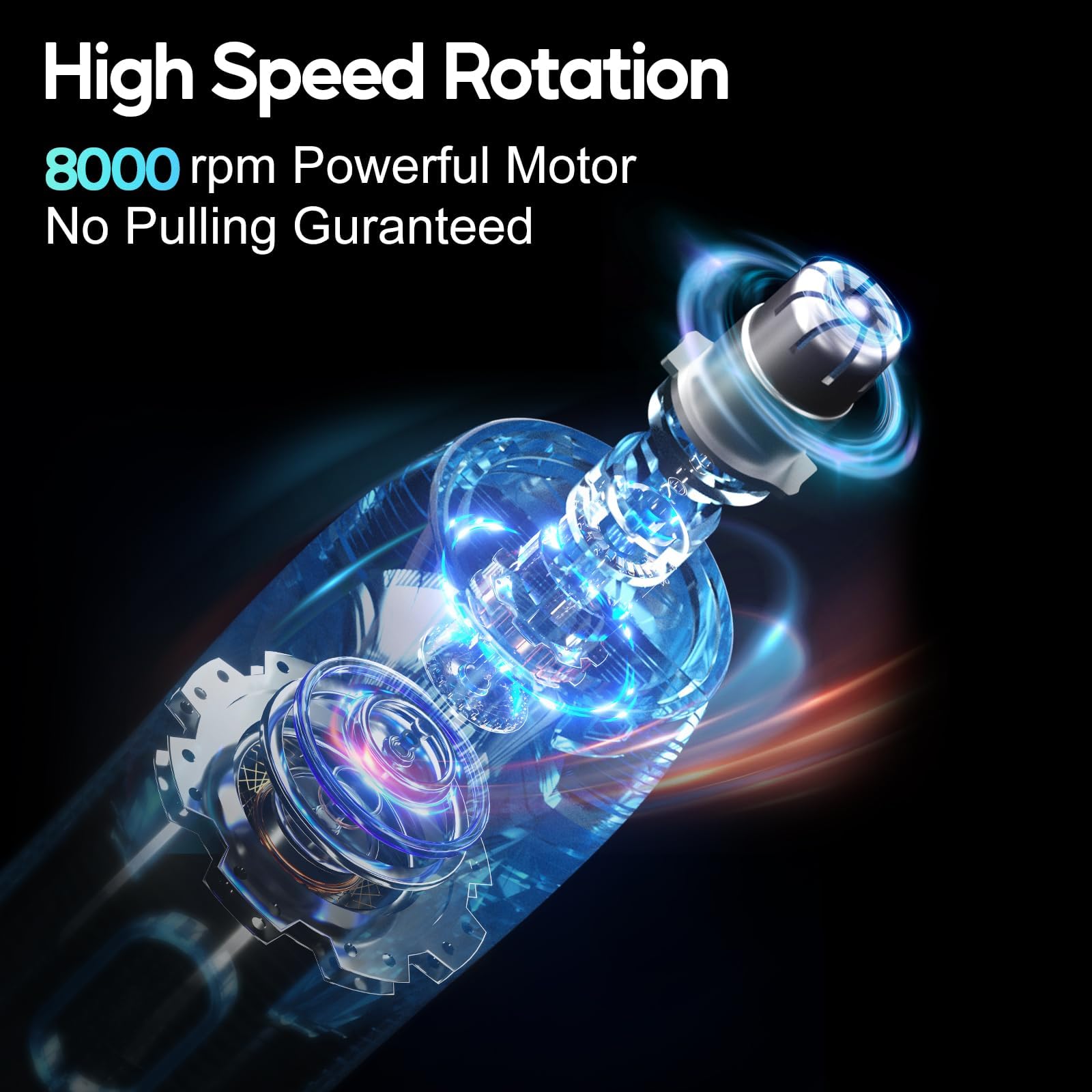 - Precision & Comfort: The HACLI Professional Cordless Nose&Ear Hair Trimmer features an upgraded copper core motor with an 8000 RPM speed, driving a 360° rotating dual-blade system. The anti-allergenic stainless steel blades ensure precise and comfortable hair trimming without pulling or damaging nasal hairs.