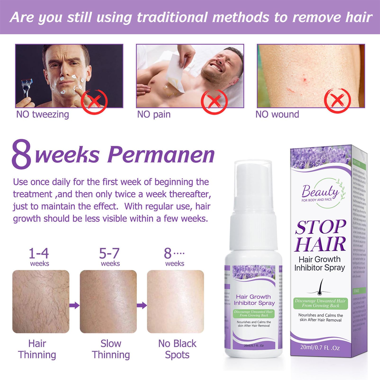6. Multiple areas: Hair stop growth spray is multipurpose, suitable for face, arms, legs, back, underarms, bikini line, leaving your whole body silky slippy.