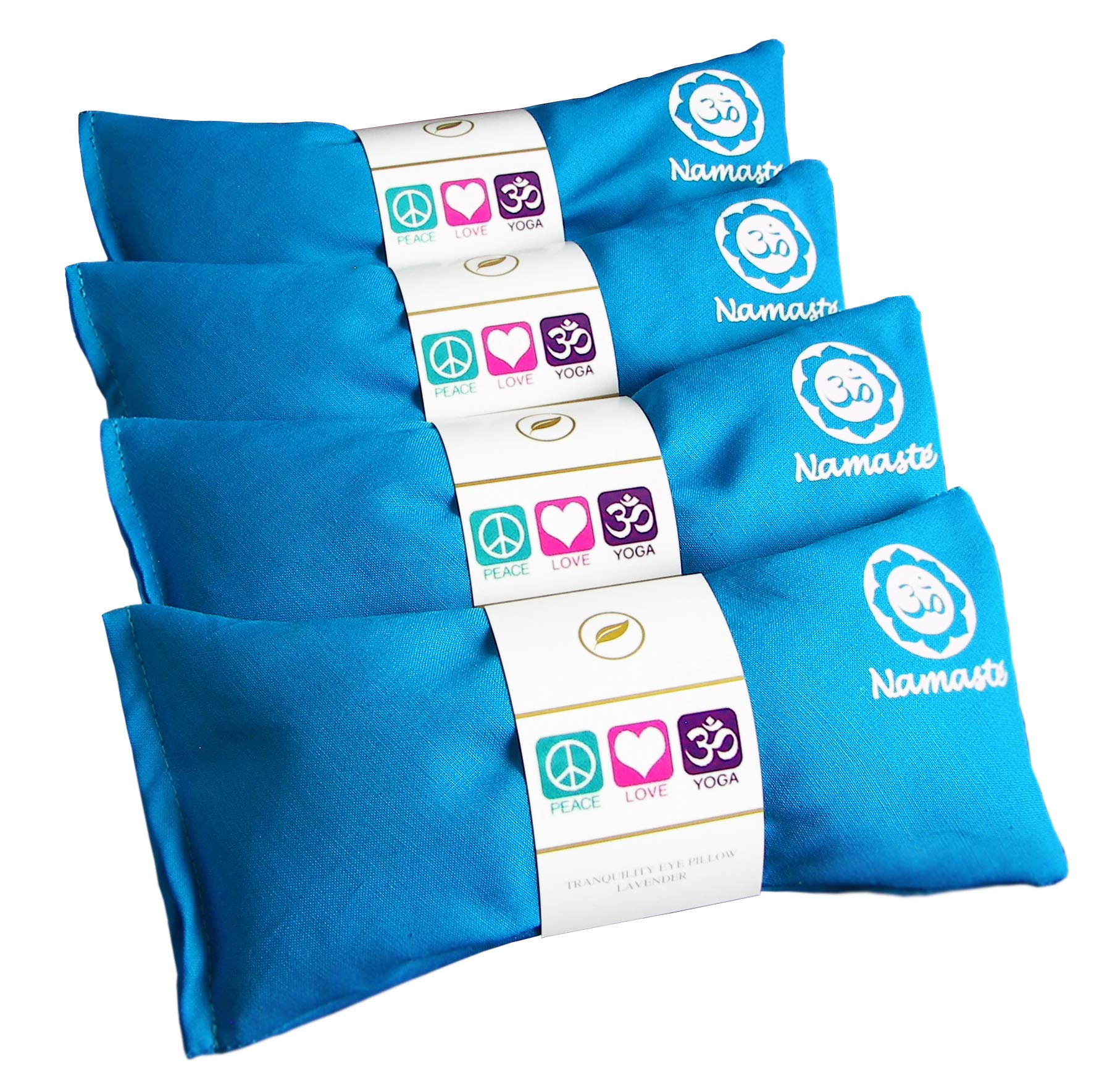 Happy Wraps Lavender Eye Pillows - Yoga Eye Pillows Namaste Hot Cold Aromatherapy for Stress, Meditation, Spa, Relaxation Gifts - Made in USA Set of 4 - Turquoise Cotton