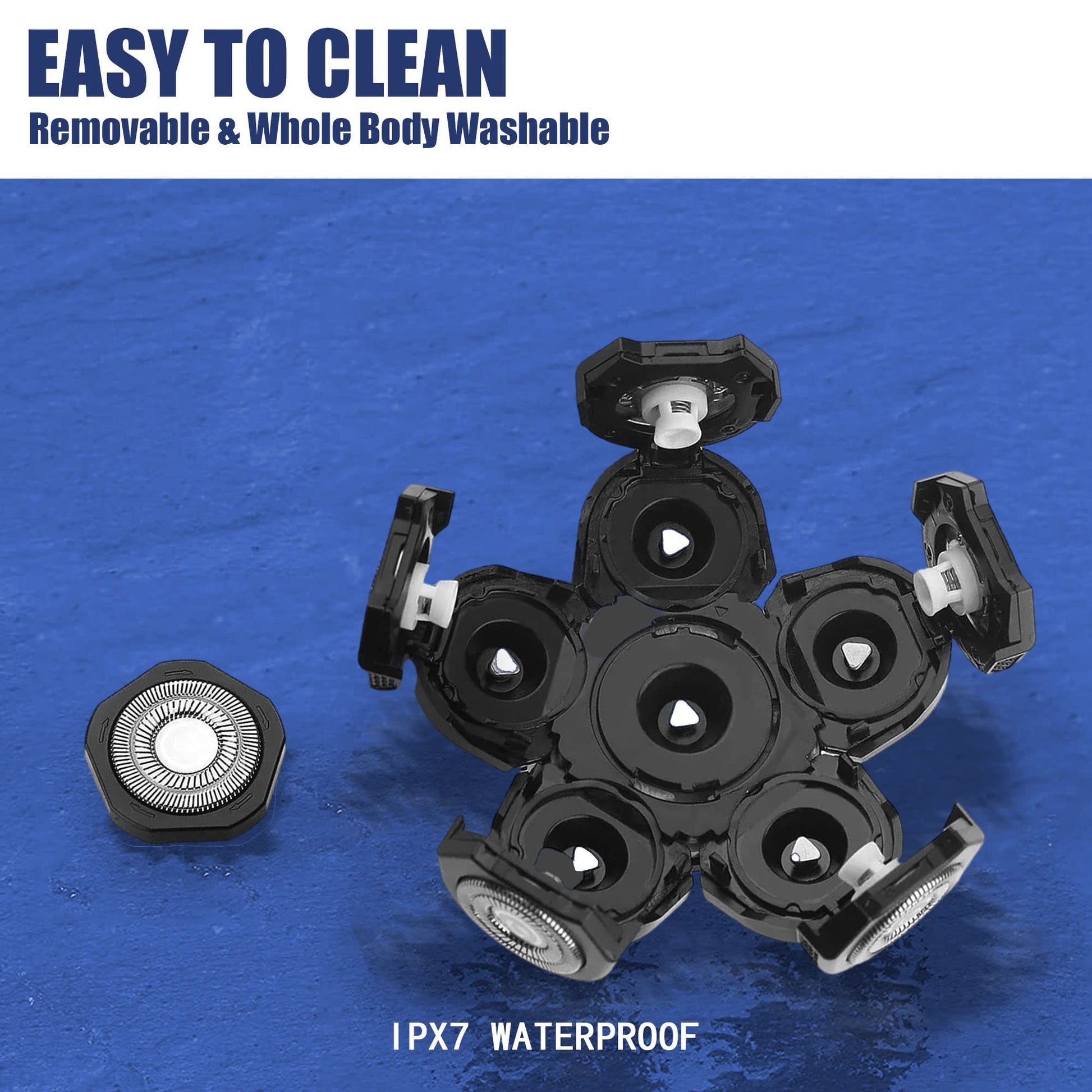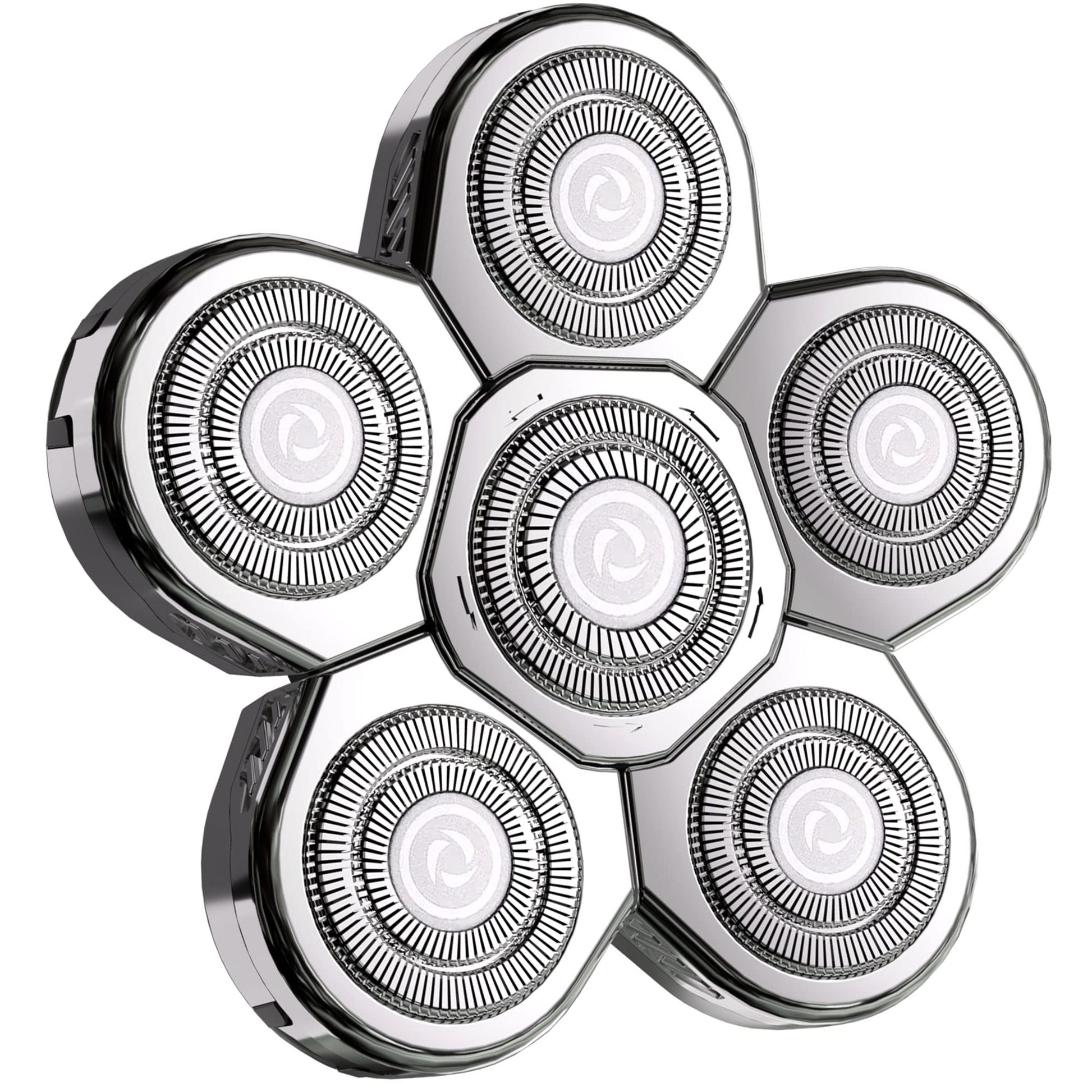 - 6 Blades Floating Electric Razor Head: 6D floating head shavers for bald men with 360°shaving can easily perfectly fit the contours of your face, head, neck and chin, providing you a smooth and comfortable experience. Mark: Not fit pitbull skull shaver.