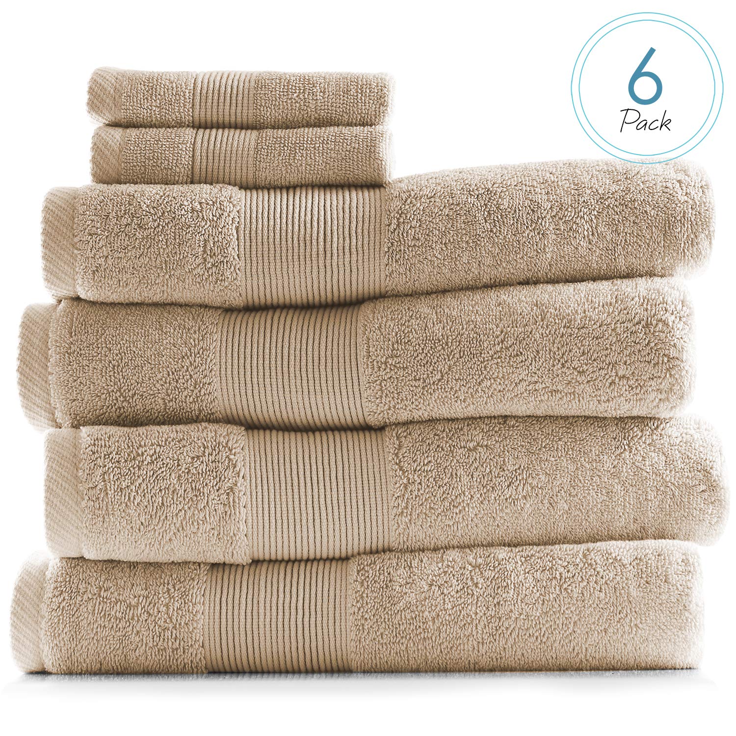 Hearth & Harbor Bath Towels for Bathroom - 100% Ring Spun Cotton Luxury Bathroom Towels - Ultra Soft & Highly Absorbent Bath Towels Set, 6 Piece Set (4 Bath Towels, 2 Washcloths) - Cream