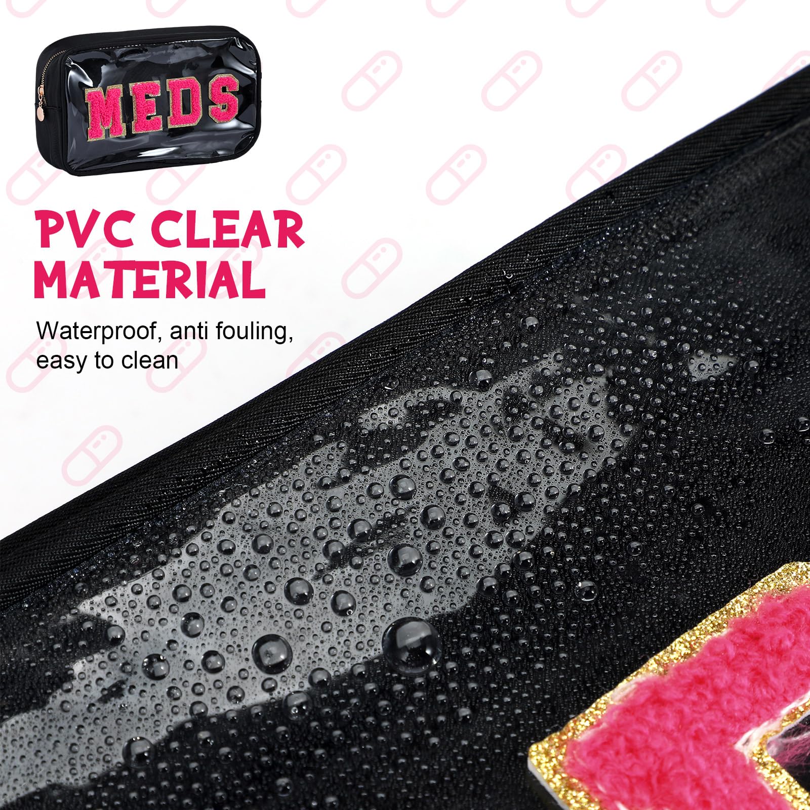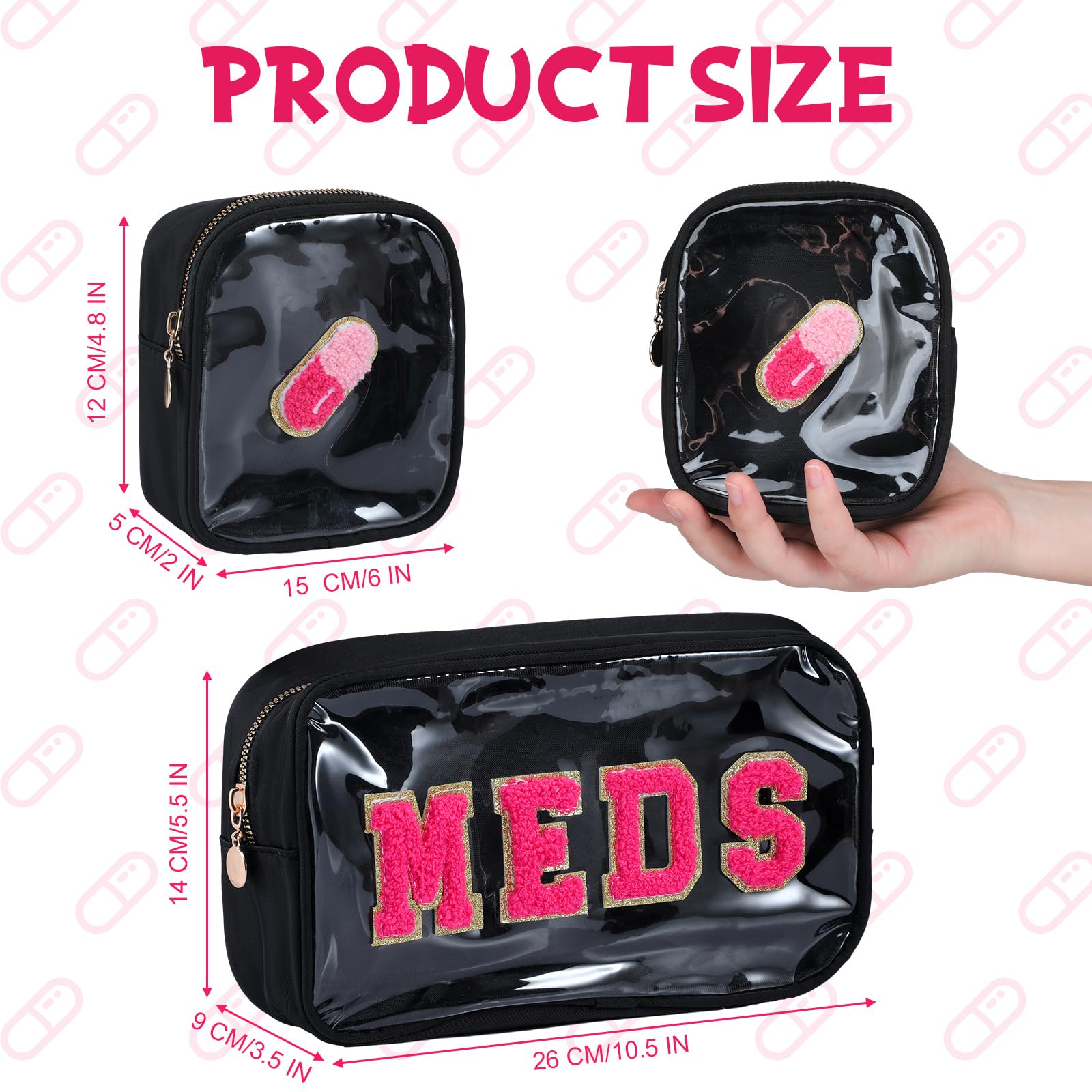 Hillban 2 Pcs Medicine Bag Gifts Chenille Letter Bag Preppy Clear Makeup Meds Nylon Pouch Set PVC Transparent Mini First Aid Christmas Gift for Travel(Basic)