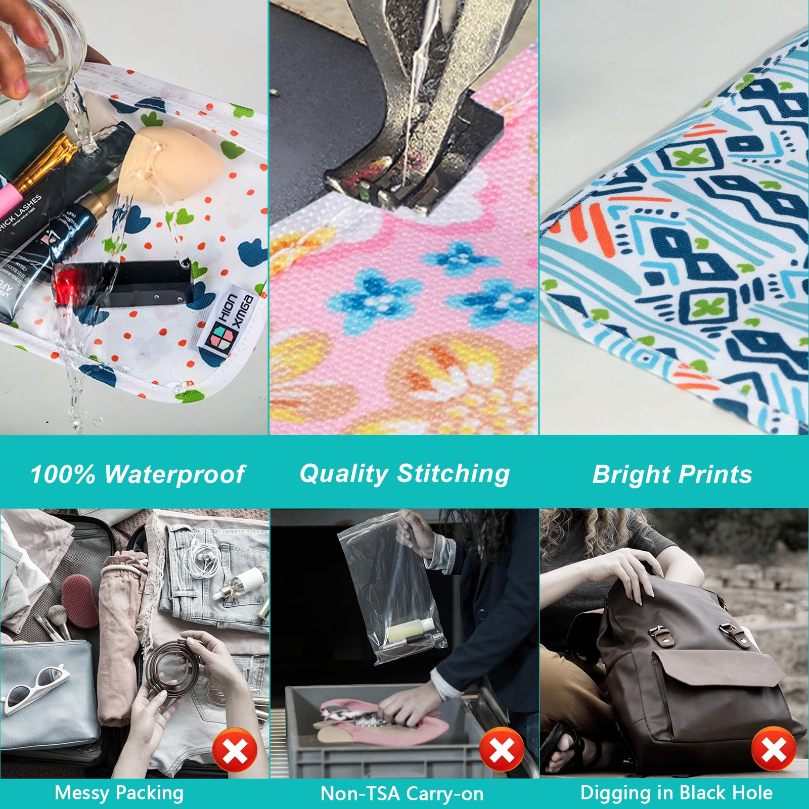 - 100+ USES IN FUN: Who says packing has to be boring? Our versatile travel pouch set with playful pattern make your organizing super simple and enjoyable. Compact design in ultra-light takes up very little room in your luggage, playful prints that both kids and adults love! It is perfect to get the clear travel bag for toiletries and cosmetics, also great as a diaper bag organizer to store baby stuff,toys,misc,first aid. Whether home or outing, it is stylish and well-organized for all busy bags.