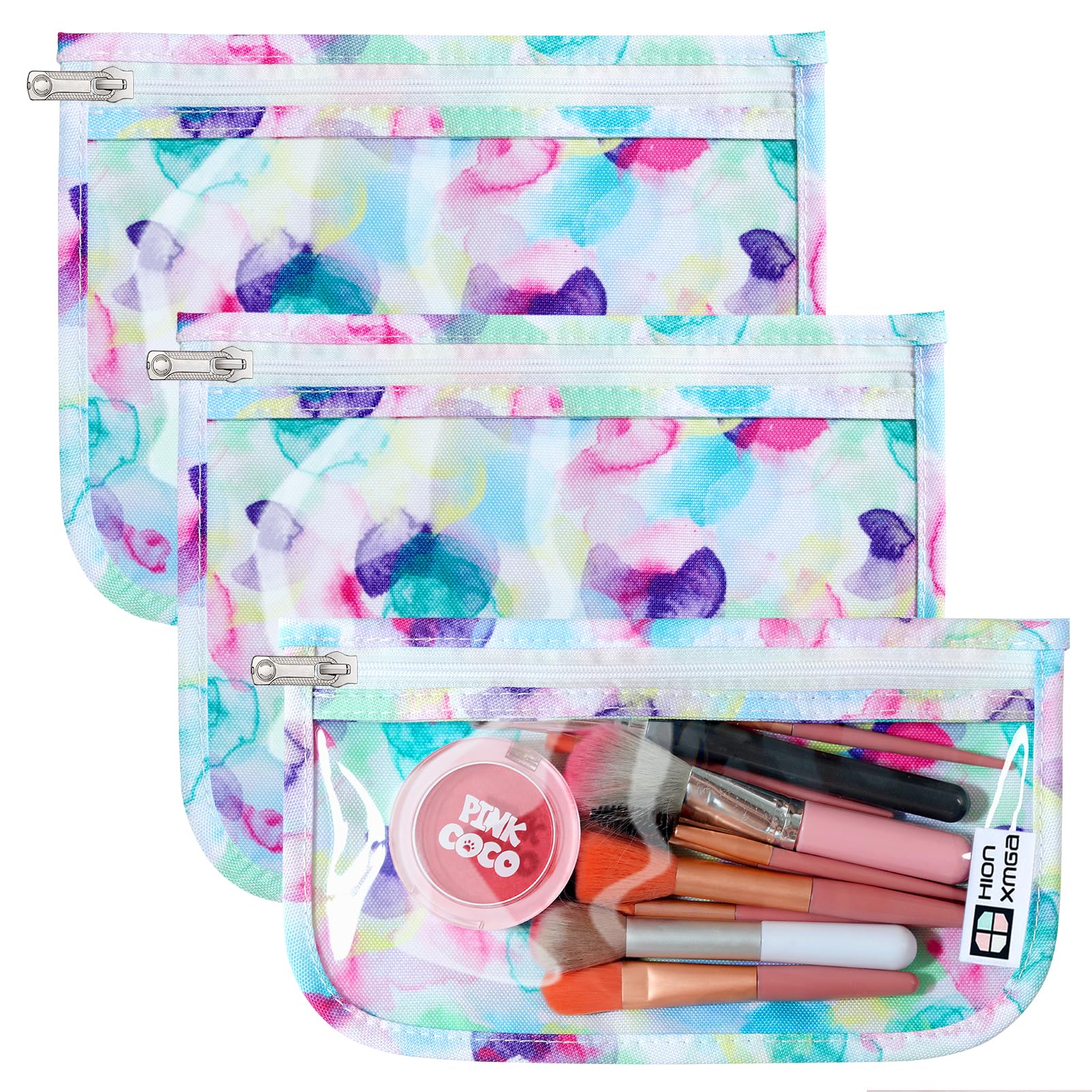 HIONXMGA TSA Approved Toiletry Bag, Set of 3 Clear Travel Toiletry Bag Quart Size Zipper Travel Pouch, Waterproof Makeup Cosmetic Bag for Women Men Kids Toiletries Carry on, Watercolor