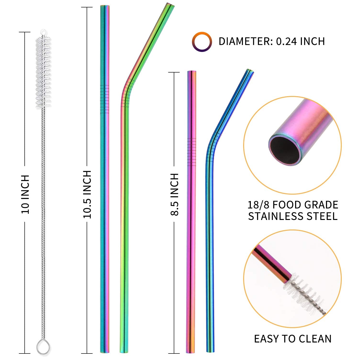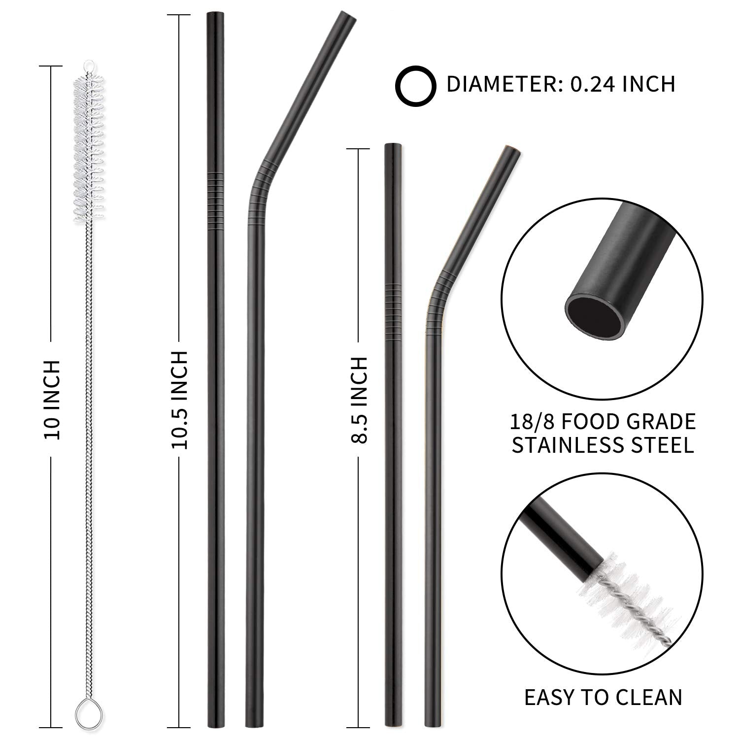 - 2 LONG NYLON CLEANING BRUSHES - Very handy to rinse off stains. Featuring a stainless steel handle and nylon bristles, the brush is of the perfect size for these straws, also suitable for cleaning cups and bottles.