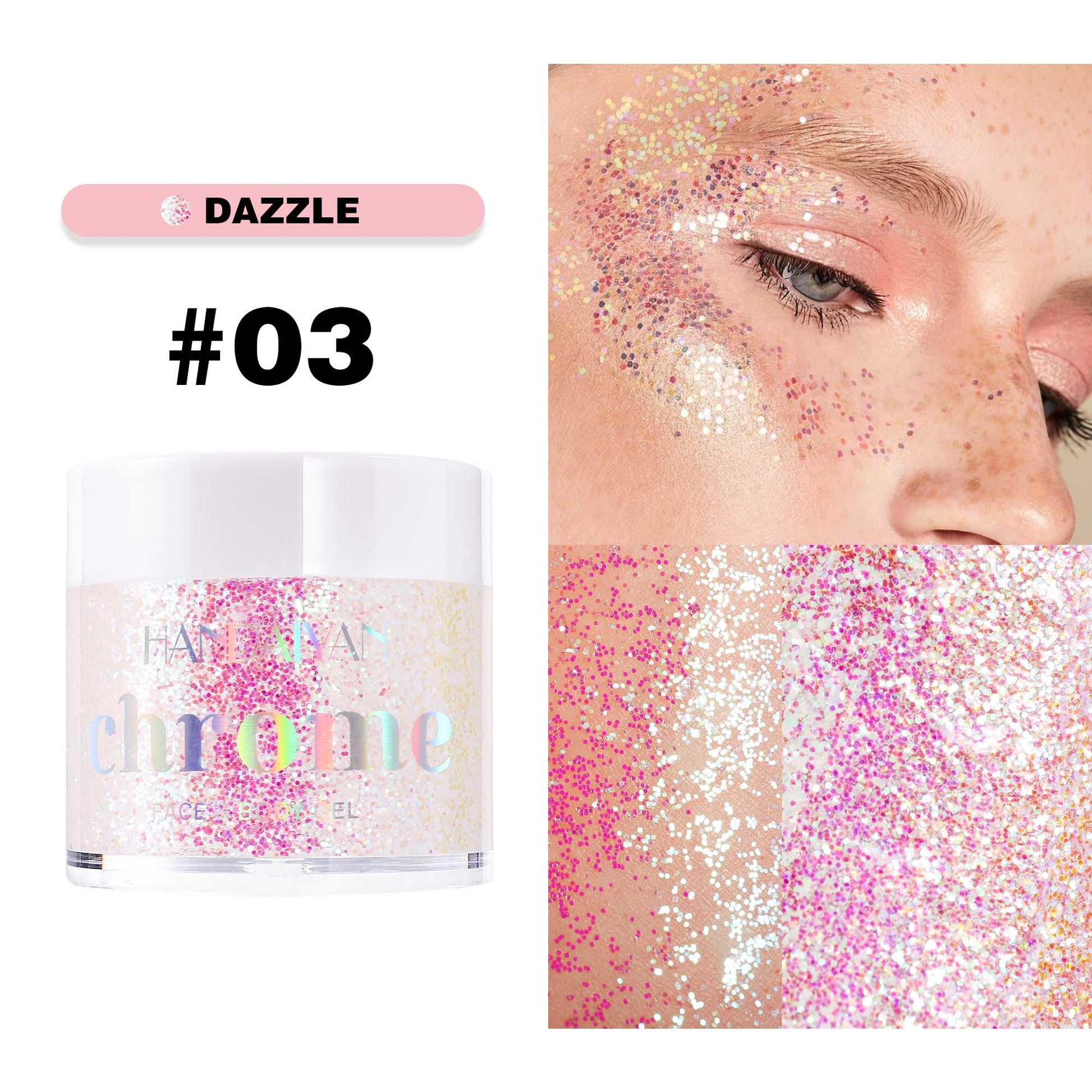 Holographic Body Glitter Gel - Cosmetic-Grade, Color Changing Long-Lasting Glitter for Face, Body, and Hair, Safe and Easy to Use, Perfect for Festivals Parties (Dazzle)