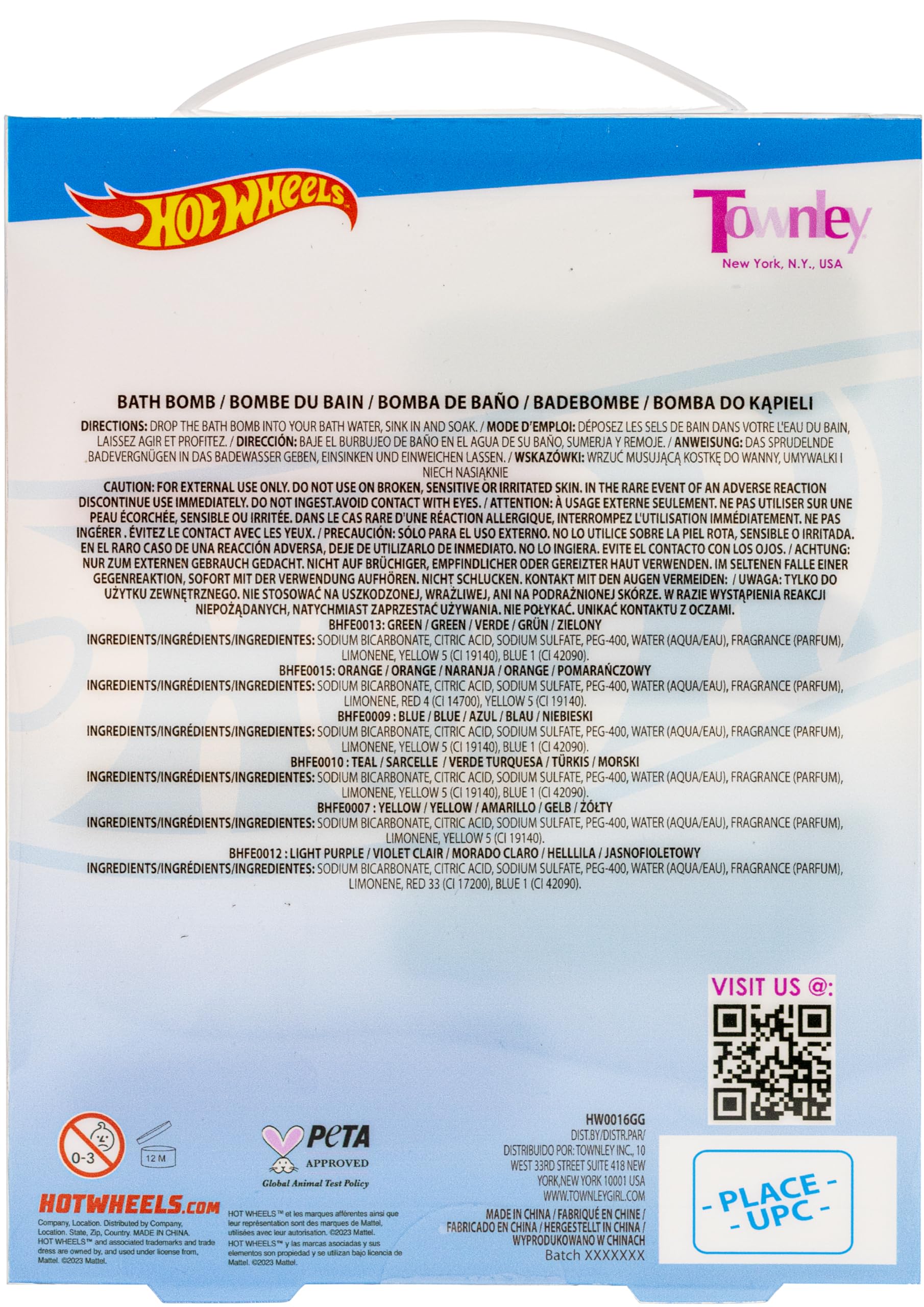 Hot Wheels 6 Piece Bath Bombs for Kids, Bubble Gum Scented, Bath Toys for Kids, Ages 3+, by Townley Girl