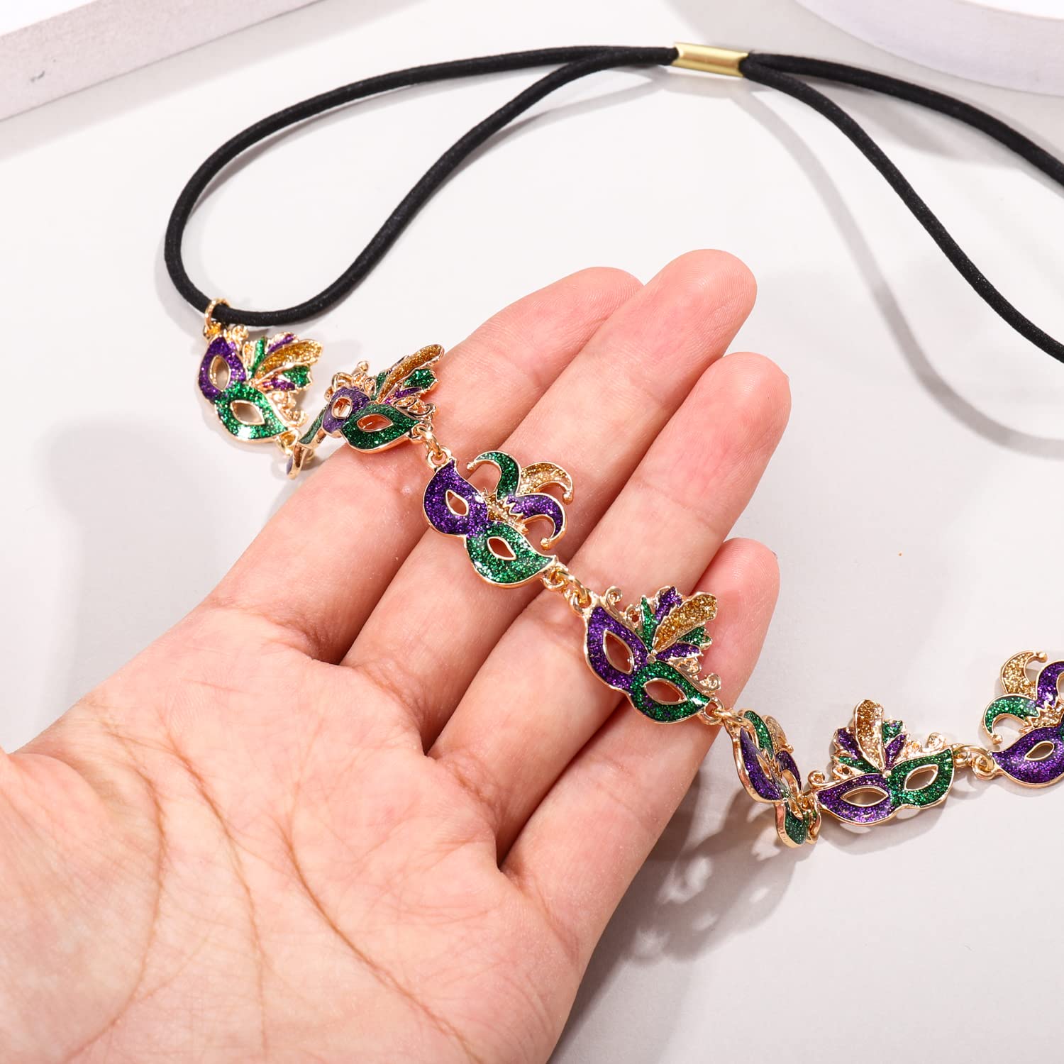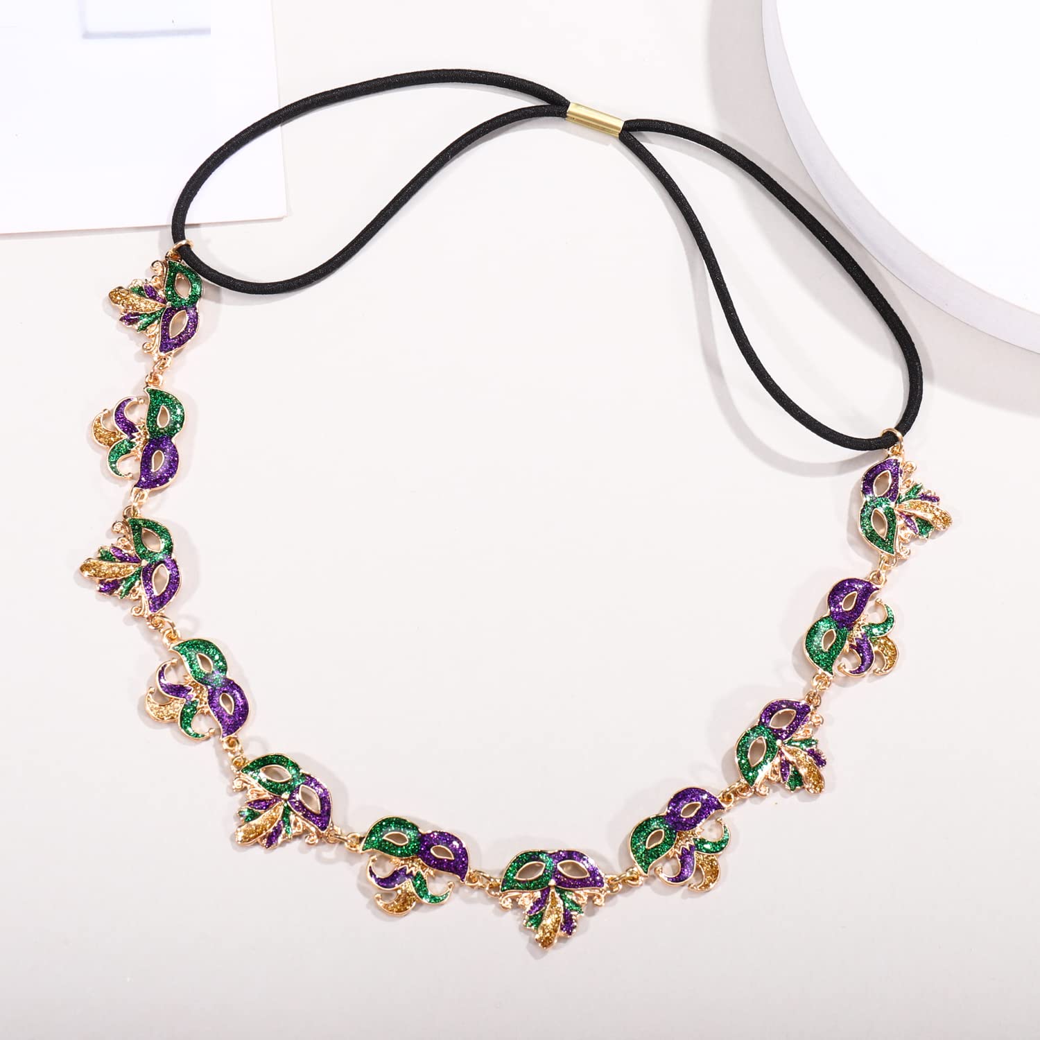 - Mardi Gras glitter mask stretch headbands, are beautifully designed with the Mardi Gras theme with the perfect glow. This fleur de lis hair band is awesome that makes you feel extra glamorous.