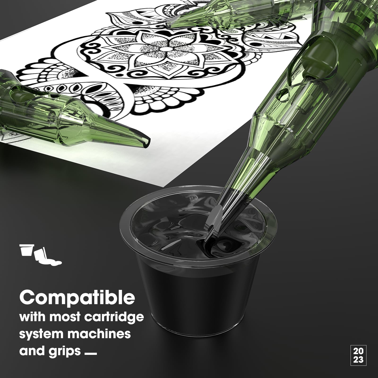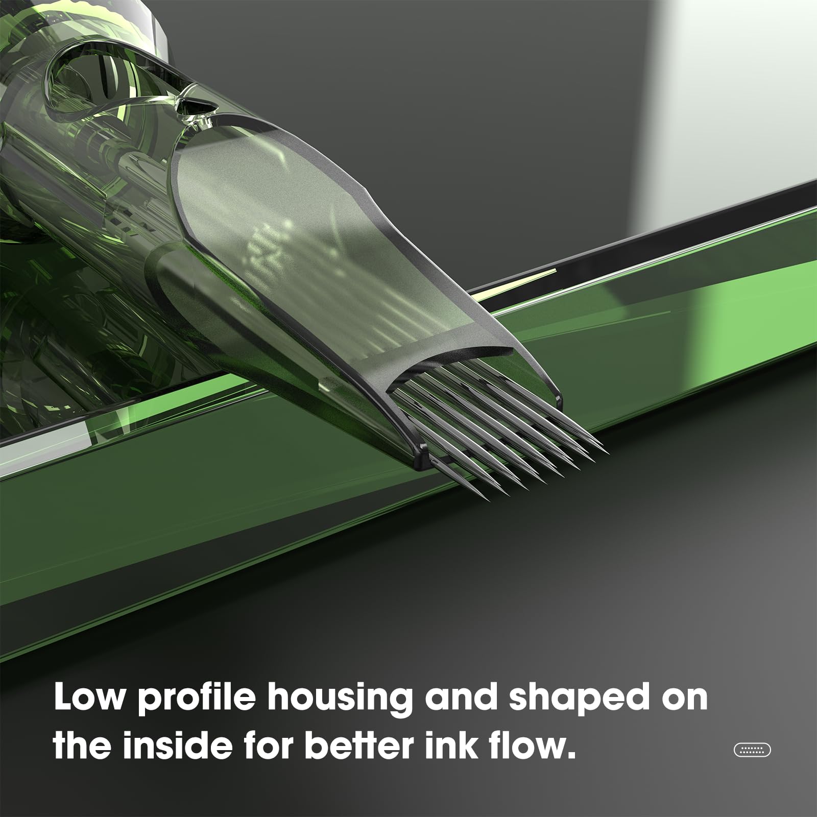 - 【New Design】This newly designed tips allow minimal ink splatter, the translucent one-piece green cartridge body gives artists the maximum visibility to the tattoos they are working on, extra-stable end-cap design and precise positioning system makes artists more relax without having to worry about needle wobbles, Plus, the stay-sharp needles allow you to work for extended hours without the uncertainty of whether the next cartridge might be an improvement.