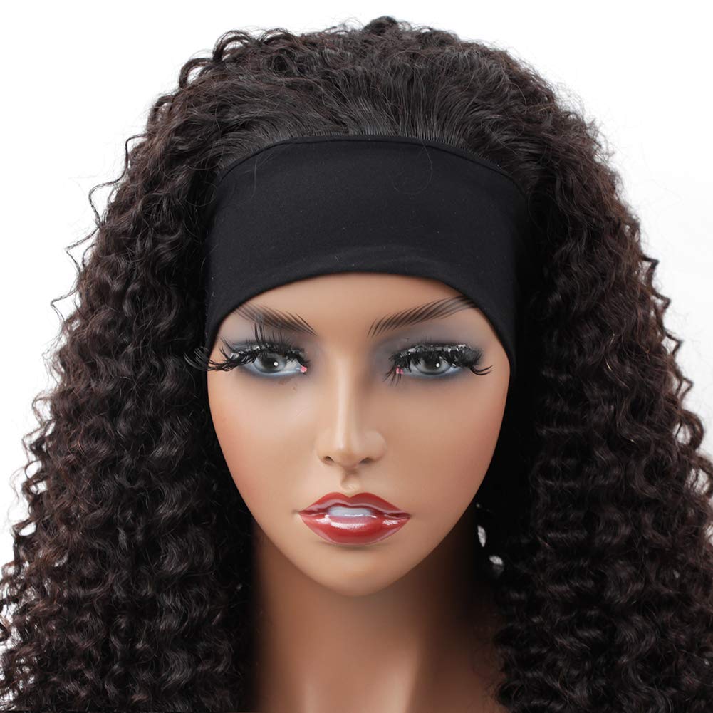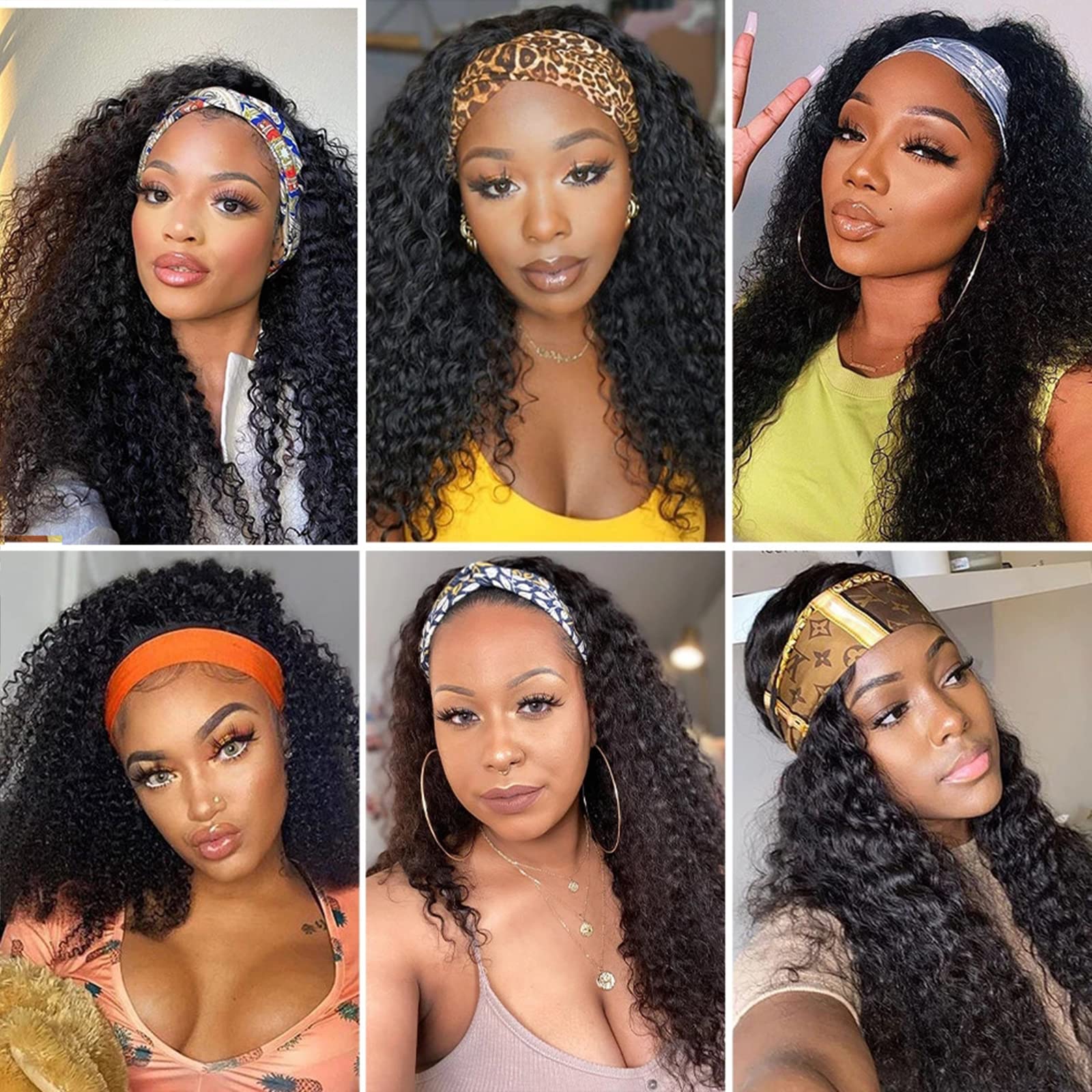 ISEE Headband Wig Human Hair Kinky Curly Human Hair Wigs for Black Women Glueless None Lace Front Wigs 180% Density 18inch