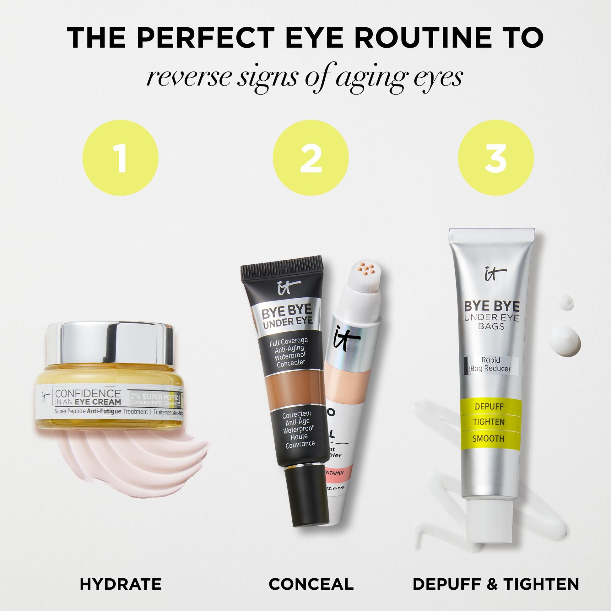 IT Cosmetics Bye Bye Under Eye Bags Treatment For Women & Men – Temporary Eye Bag Reducer & Undereye Corrector Depuffs, Tightens, Smooths & Reduces Look of Wrinkles & Fine Lines - 0.5 Fl. Oz