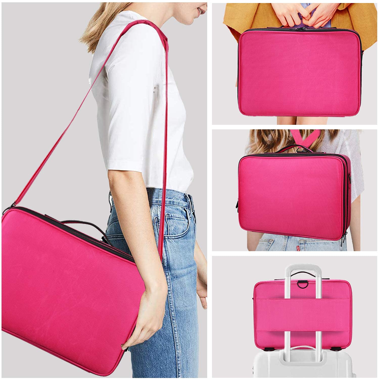 - Adjustable Shoulder Strap: This professional cosmetic bag with shoulder strap can free your hands or be attached to your trunk, and the portable carry handle is easy to lift or hang.