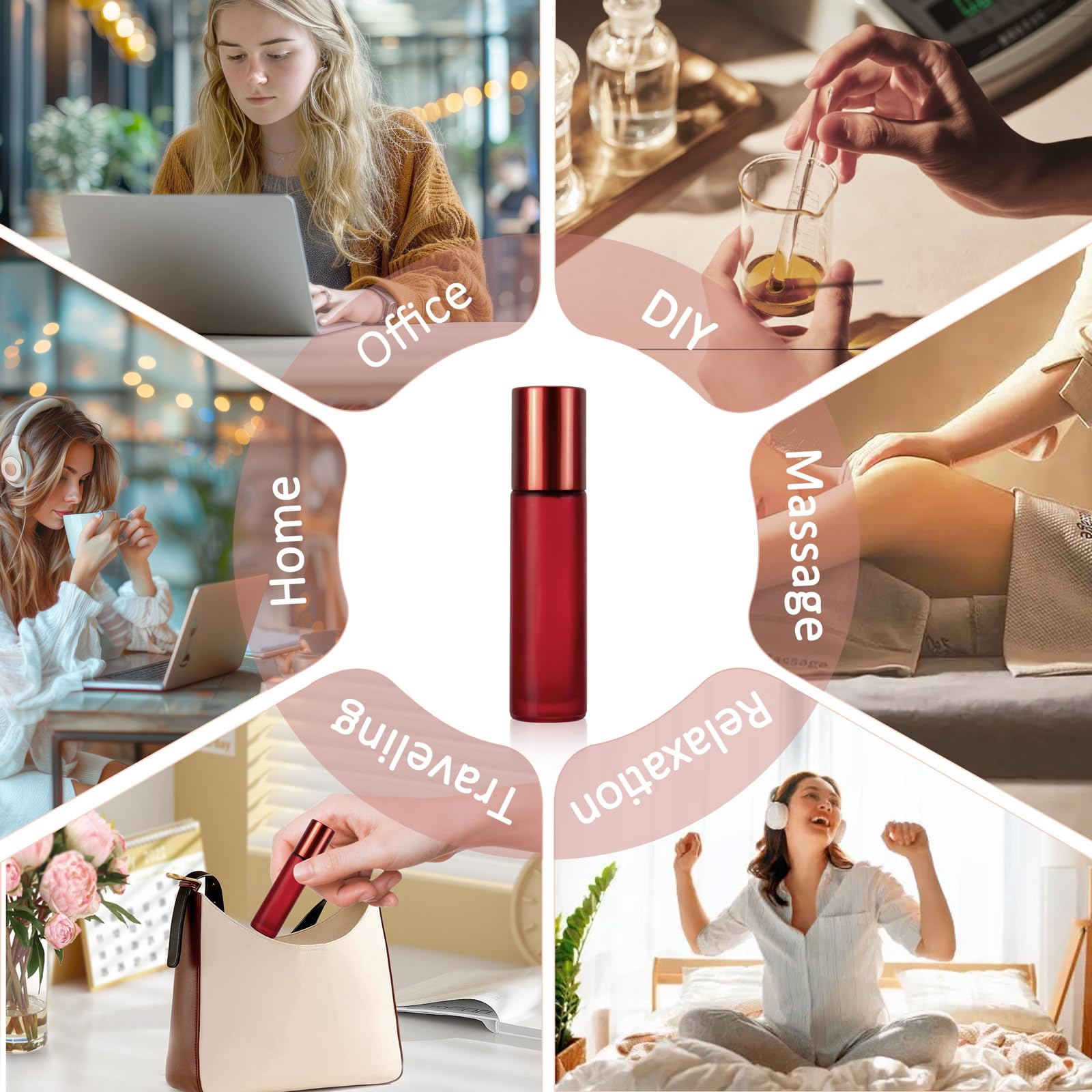 - Package Included: 10 pcs 10 ml Glass Essential Oil Roller Bottles with Stainless Steel Roller Ball, red Aluminum Lids