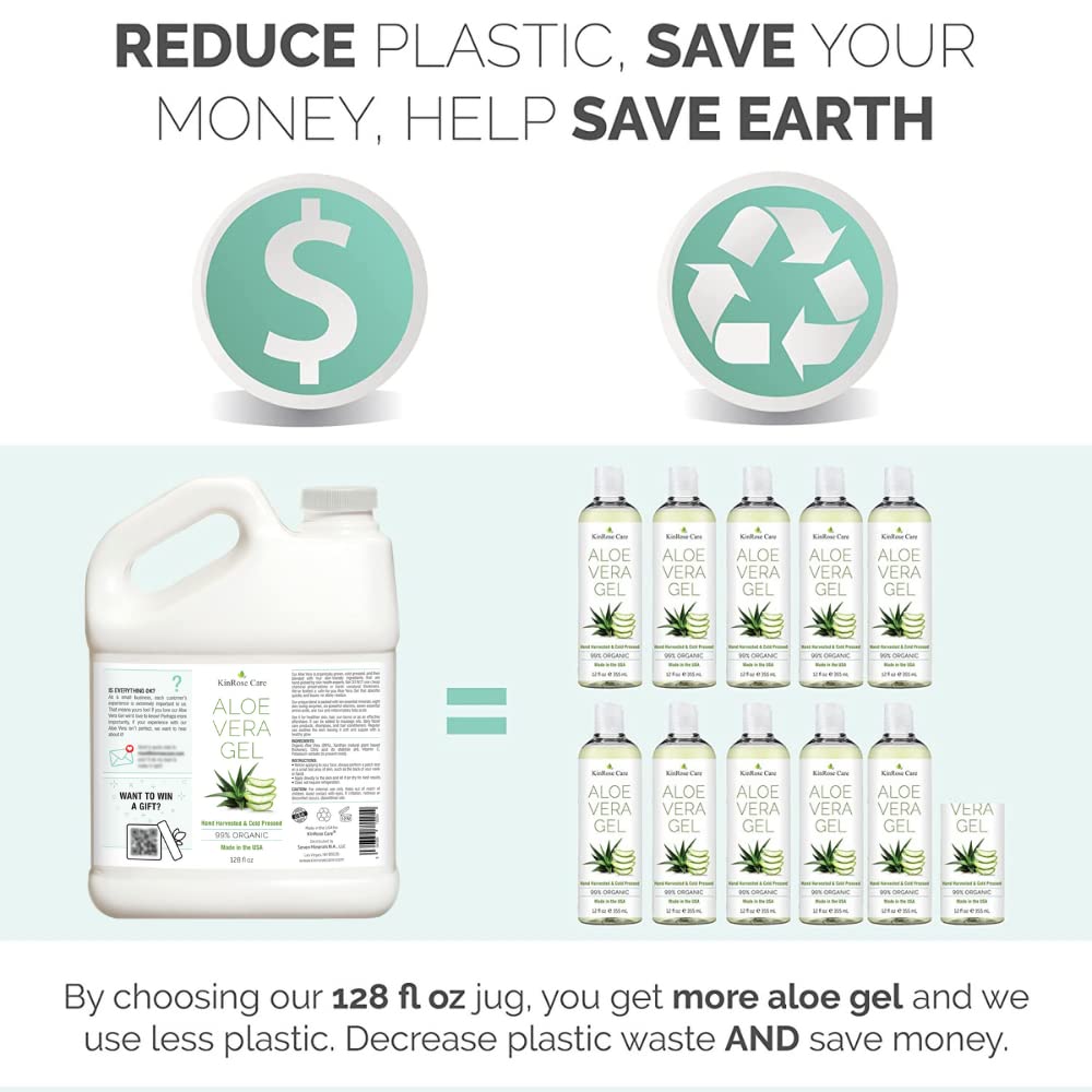 KinRose Care Aloe Vera Gel Organic Gallon for Face, Skin, Hair & Sunburn Relief 100 Percent Pure Aloe Vera Gel Bulk Wholesale - Cold Pressed, Vegan, Unscented - Made in USA (128 Fl Oz)