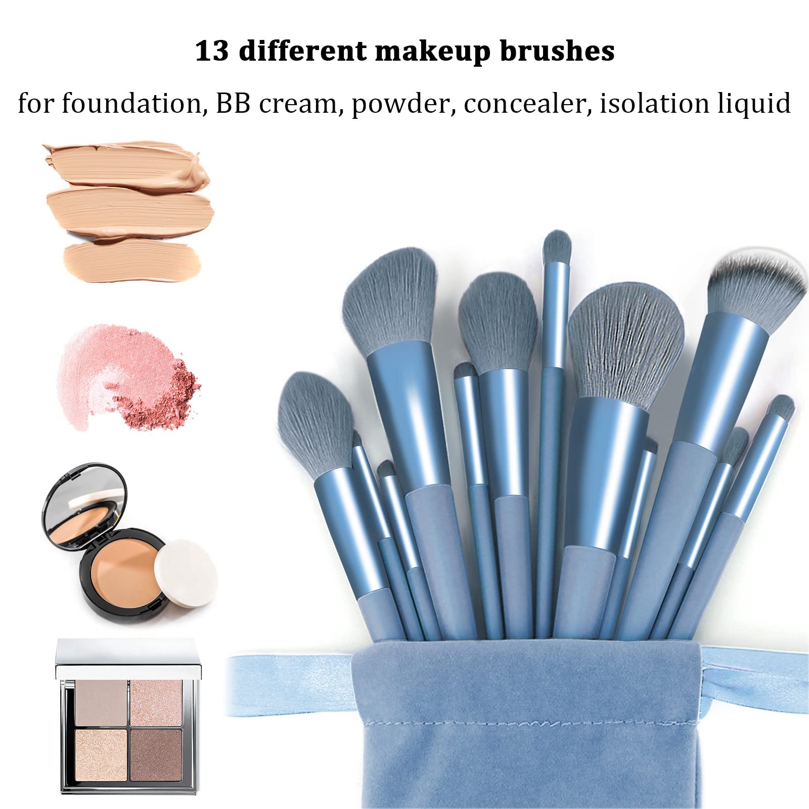 - Soft and comfortable bristles : The bristles of our makeup brush set are made of high-quality fiber hair. The bristles are rich, soft and fluffy, and will not fall off easily. They can better grasp the powder and spread evenly on the face, which not only makes your makeup more natural, but also gentle and non-irritating to the skin.