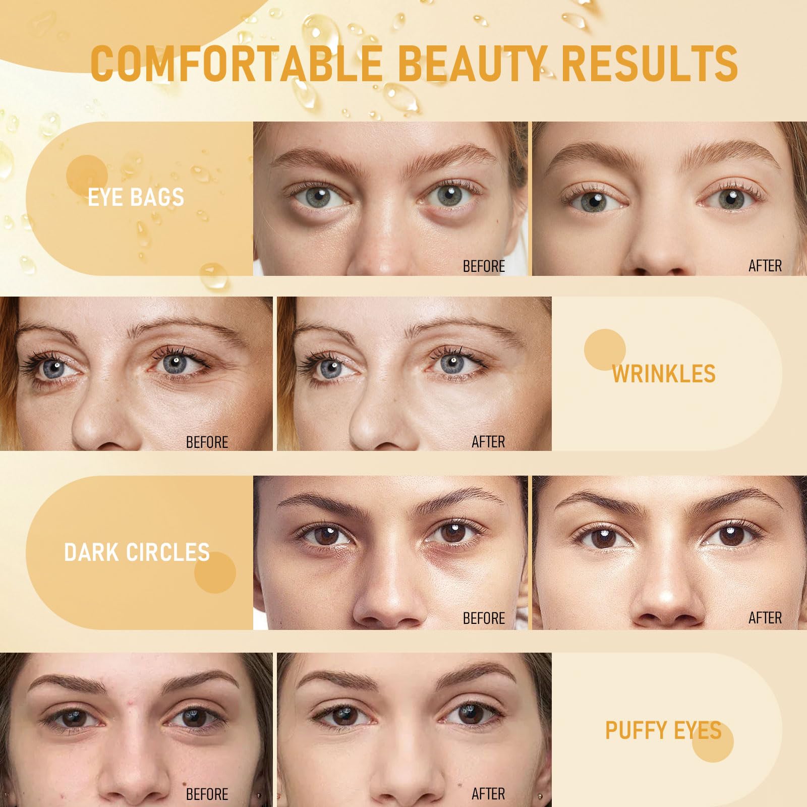 - [Effective Eye Treatment] - LAVONE eye mask rich in 24K gold, hyaluronic acid, collagen and fever few natural extracts. Eye patch for dark circles and puffiness. Enhances skin for a luminous bare-faced glow, visibly Anti-aging, hydrates, nourishes skin. Improves texture, reduce wrinkles, eye bags and fine lines. Leave skin smooth, soft, refresh and grow. Keep your eyes young!