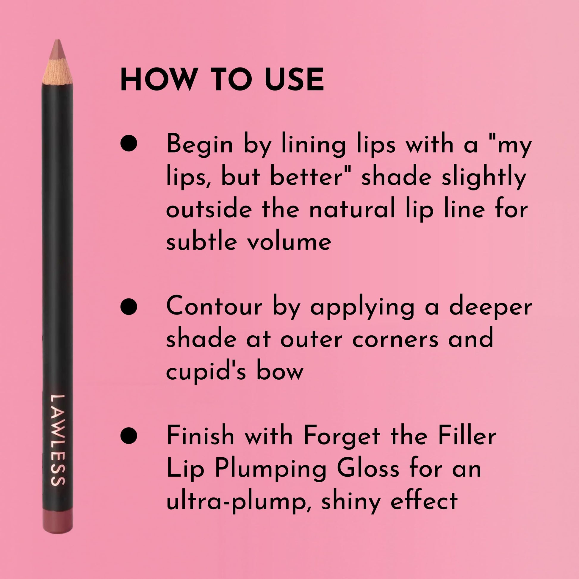 - Define, line, shape, contour, and fill with Lawless Forget The Filler Definer Liner. This comfortable, creamy lip liner provides a silky smooth touch and optimal glide, allowing you to create precise lines and effortlessly perfect your pout.
